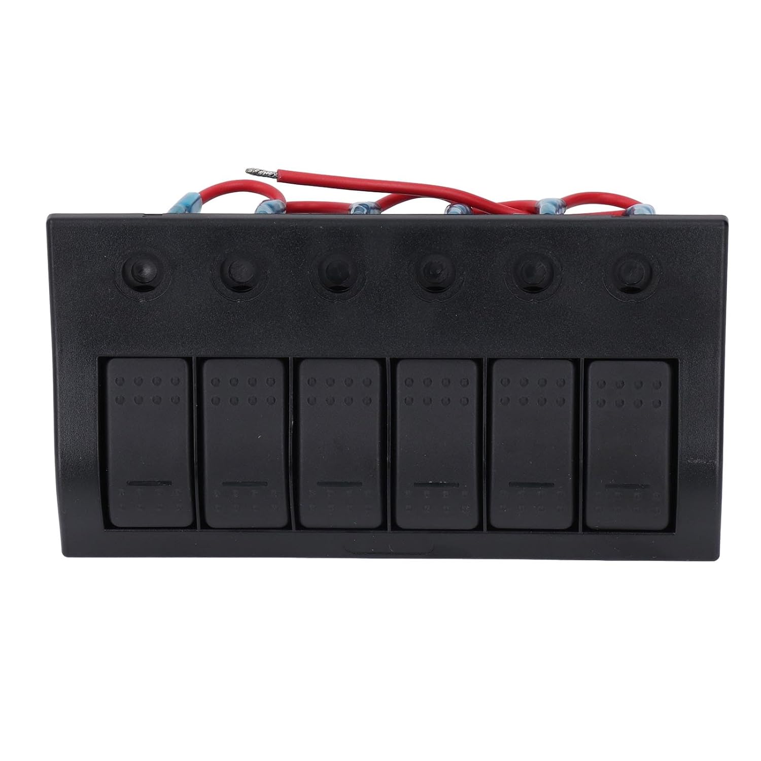 Item Type: Rocker Switch PanelMaterial: ABSWorking Voltage: DC12V 24VOverload Protector Quantity: 6 (10A x 3, 15A x 3)LED Color: Green Rating: IP68Application: Can be used as headlight switch, fog light switch, width light switch, car refrigerator switch, car vacuum cleaner switch, etc.Application: For Boat, for Yacht, for RV, for BusPackage List:1 x Switch Panel4 x Stickers4 x Installation Screws (Random Colors)1 x Sealing Washer
