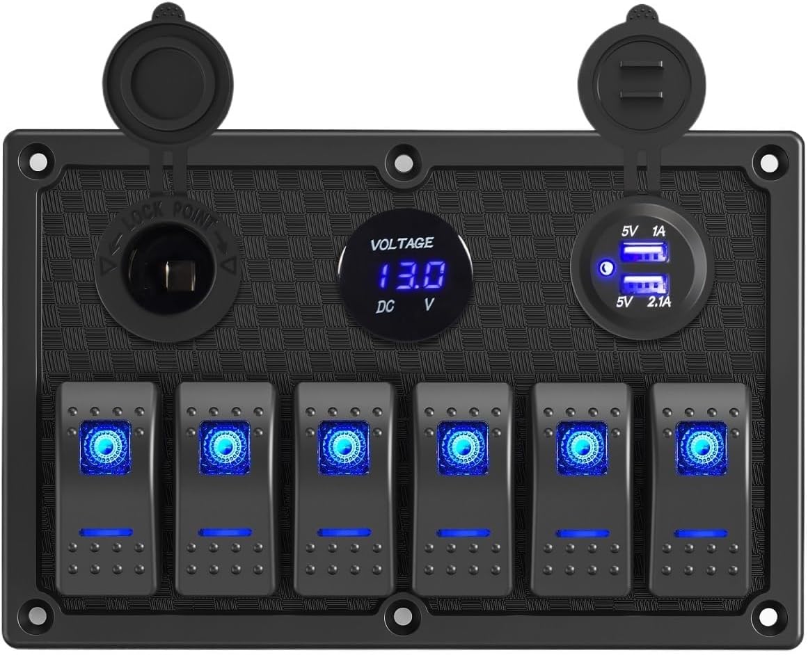 12V 24V Waterproof On-Off Circuit Breakers With Fuse Panel Switch With Sticker 8 Gang Rocker Switch Panel For Car Boat Marine