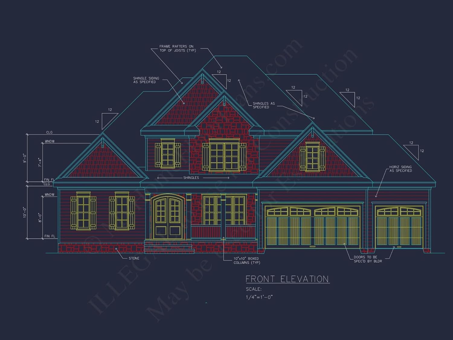Width: 71′-0″Depth: 56′-6″Htd SF: 3,822Unhtd SF: 1,155Spacious 5-Bedroom House Plan with Open Layout & CAD DesignsThis expansive house plan includes 3,822 heated sq. ft., 5 bedrooms, 4 baths, and functional CAD blueprints—perfect for families and builders seeking comfort and flexibility.This 5-bedroom house plan offers a perfect mix of generous living space and modern convenience. Designed for comfort, functionality, and lasting style, it delivers exceptional value for both homeowners and architects alike.Key Features of the Home PlanLiving Areas - Heated & UnheatedHeated area: 3,822 sq. ft. across two levels.Unheated extras: 1,155 sq. ft. including garage, porches, and storage.Bedrooms & Bathrooms5 spacious bedrooms including a luxurious Owner Suite on the main level with a walk-in closet.4 full bathrooms, including a Jack-and-Jill bath for added convenience.Interior HighlightsOpen floor plan with seamless flow between the kitchen, dining, and living spaces. Explore open layouts.Grand fireplace as a cozy focal point for family gatherings. Browse fireplace plans.Tray ceilings and 9'+ ceiling heights for an elegant atmosphere.Kitchen island and walk-in pantry for gourmet preparation and storage.Bonus room and recreation space for games, hobbies, or entertainment.Mudroom with built-in organization to keep everyday clutter at bay. See mudroom layouts.Garage & Storage DetailsGarage Bays: 2- to 3-car garage options depending on customization.Garage Type: Front-load garage for easy access and curb appeal.Storage: Bonus storage in attic, closets, and flexible utility areas.Outdoor Living FeaturesCovered front porch for welcoming guests in style.Screened rear porch and patio—perfect for year-round relaxation and dining.Exterior clad in stone, shingle, siding, and shake for timeless durability.Architectural Style: Transitional TraditionalThis design blends classic materials
