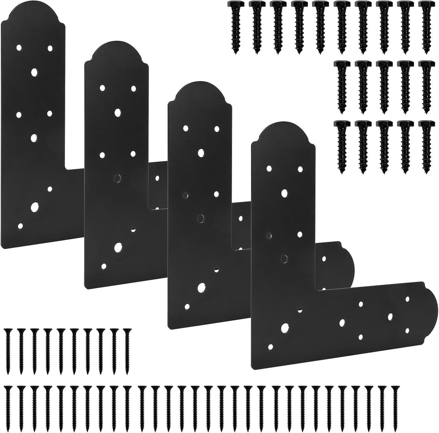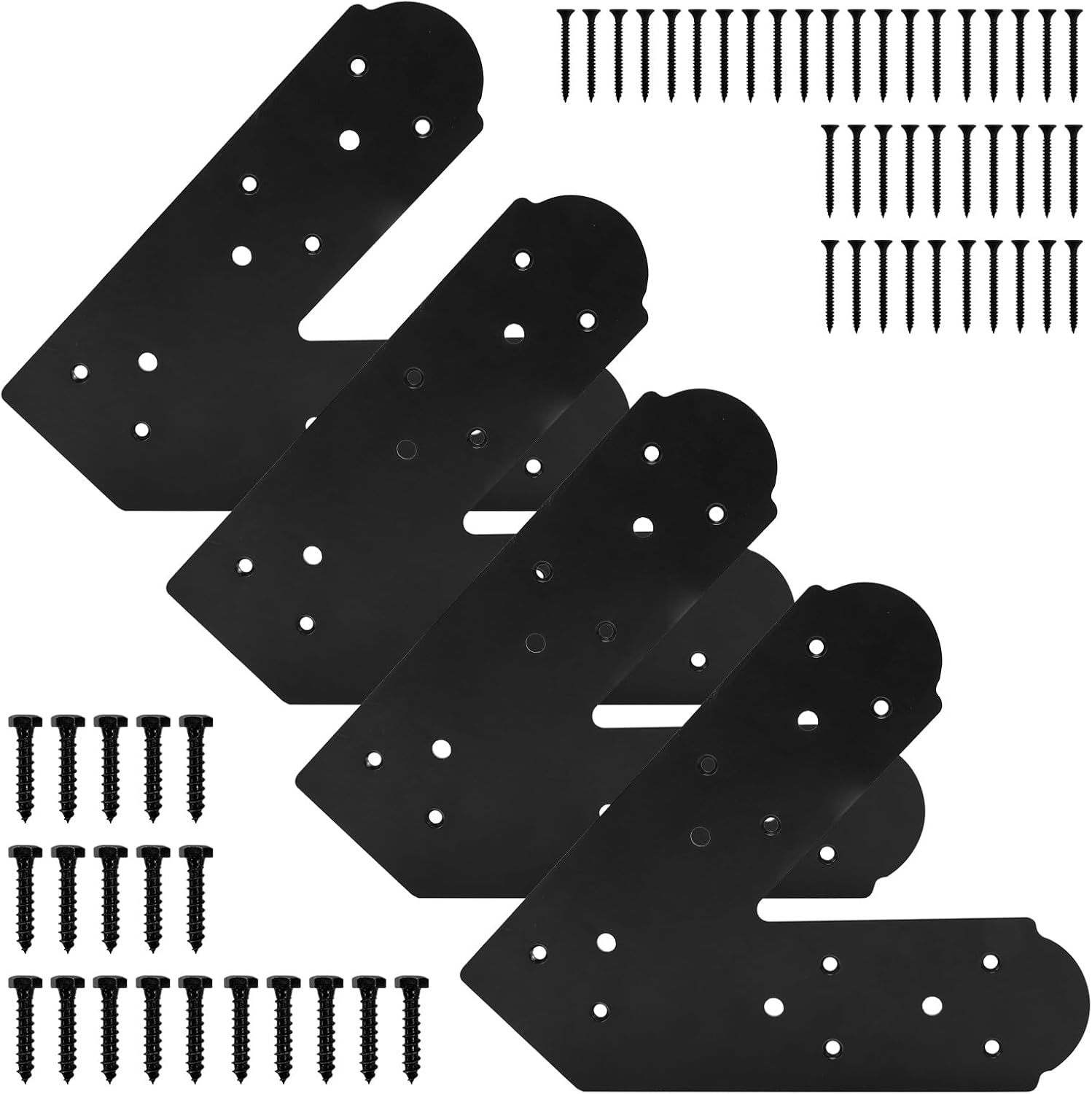 4 Pcs 135 degree Heavy Duty Flat Mending Plate Connecting Brackets(Screw Included) Our 135 degree angle flat mending plate bracket is made of carbon steel, corrosion and rust resistant, suitable for indoor and outdoor use. 135 degree angle bracket mending plate flat plate suit for 4" x 4" or 6" x 6" lumber, offer support to ensure your furniture is safe for use. These black flat repair plates are also used in home repair and wooden diy project to fix and strengthen wooden structures. Pre-drilled holes for easy to install. Specifications: Material: Carbon steel Color: Black Single Side Length: Approx.10" Thickness: Approx.0.12" Package Included: 4 x 135 Degree Flat Brackets