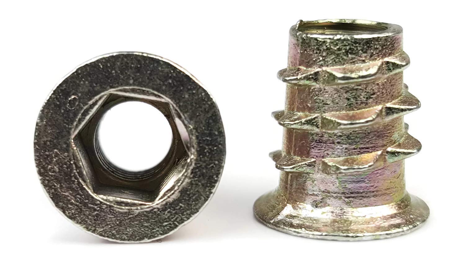 1/4"-20 Zinc flange hex drive threaded inserts are used to create durable metal threading in soft materials such as wood. They are used to replace stripped threading or create threading that needs to be used over and over again, reliably.