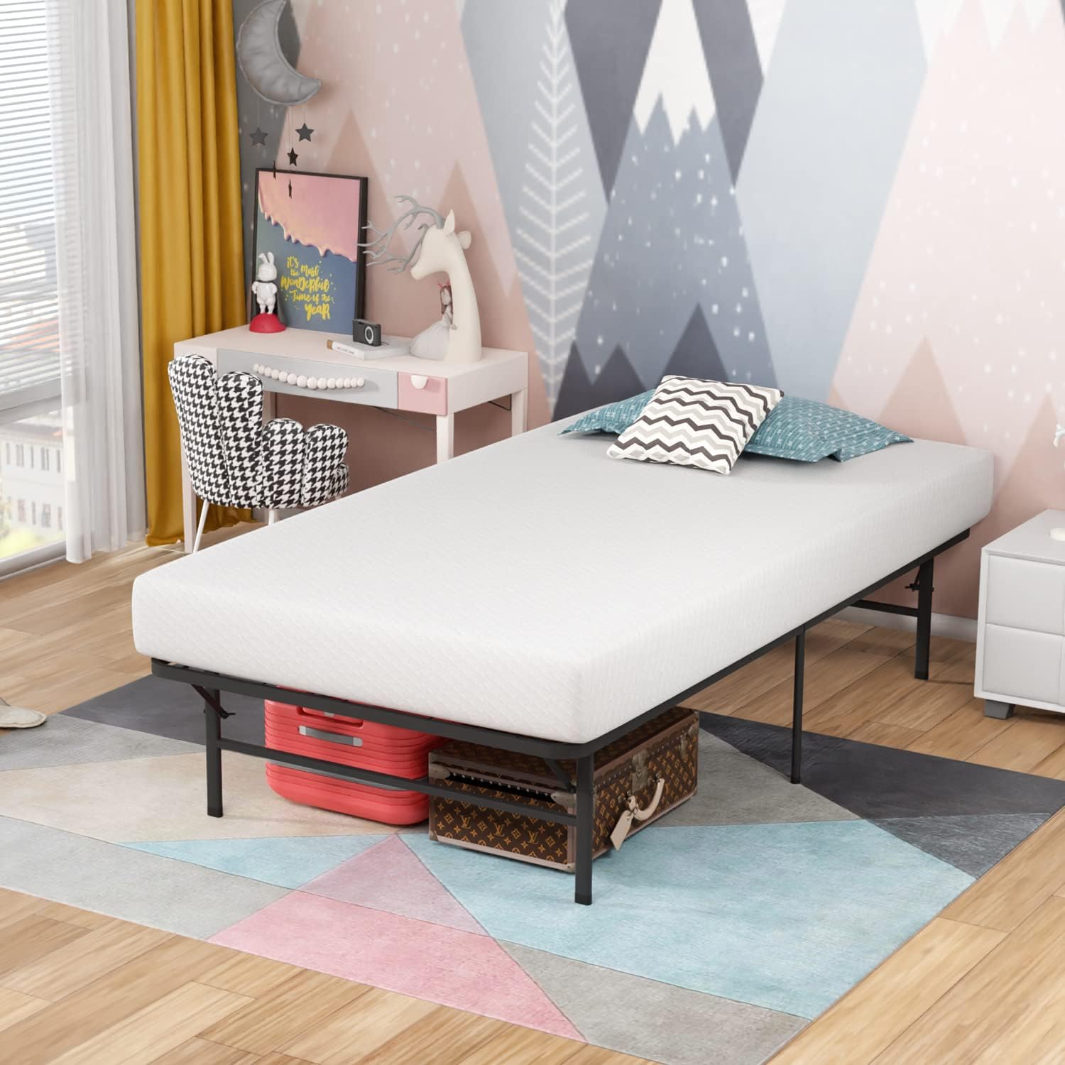 √√ Warm prompt:A - Do not tighten the screws before the bed frame is completely assembled, and ensure that the legs are in contact with the groundB - Mattress includedC - Check whether all screws or bolts are tightened and regularly check√√ Best combination:·This black metal frame bed and mattress is simple in design and practical. It is very suitable for teenagers' rooms, guest rooms, dormitories, apartments and friends·The reliable design of the bed frame is completely made of durable steel, with multiple contact points with the floor and plastic cover to protect your floor