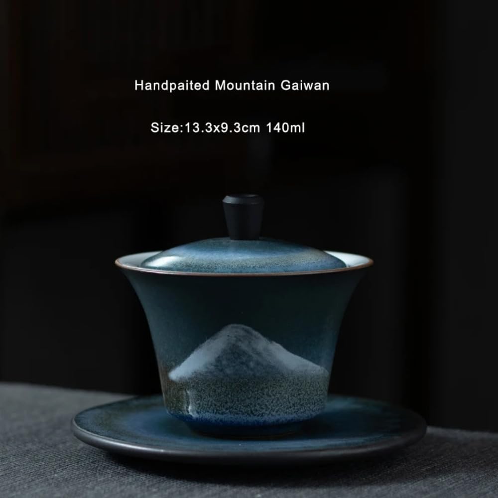 140ml Ceramic Gaiwan Handpainted Mountain Porcelain Tureen Material : Ceramic Origin : Mainland China Size:13.3×9.3cm 140ml
