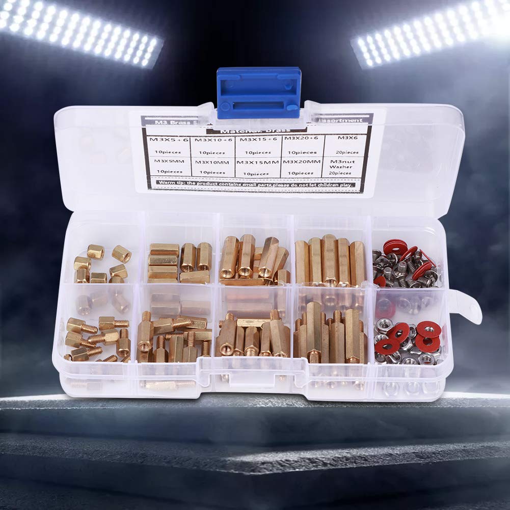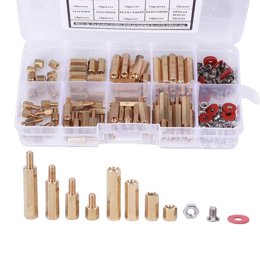 Specification: Item Type: M3 Brass Standoffs Screws Washers NutMaterial: Brass. Package List: Double-Pass Hex Stud:10 X M3 X 5+610 X M3 X 10+610 X M3 X15+610 X M3 X 20+6 Single Head Hex Stud:10 X M3 X 5mm10 X M3 X 10mm10 X M3 X 15mm10 Xm3 X 20mm Screw: 20 X M3 Nut: 20 X M320 X Spacer
