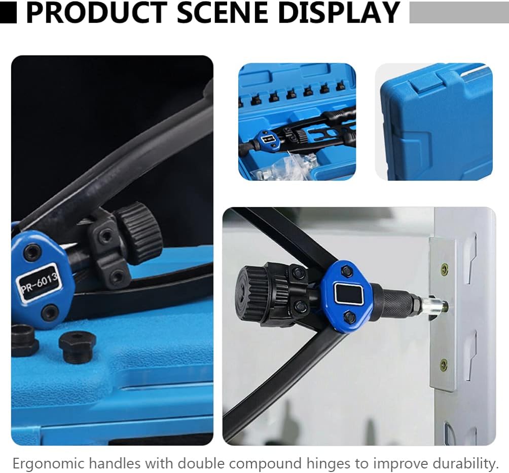 Description Made of and sturdy materials, this nut installation tool kit is sturdy, and safe. With a pack of useful and mandrels with different size, it brings great convenience to your installation work. Reasonably designed installation tools provide you with a comfortable experience. Features- Material: Chromium molybdenum steel, aluminum alloy.- Color: Assorted.- Size: 32. 70X15. 50X3. 00cm 12. 85X6. 09X1. 18in.- The rivet tool kit has multiple interchangeable mandrel groups and various sizes of rivet nuts, which can ensure that all your needs are met- Excellent when access to the rear of the panel is , sheet metal processing.- The rivet nut tool is a of multiple design concepts that are simple to use and labor- saving, .- The tool is made of quality material. Excellent design structure and hard material to extend the service life.- Wide range of applications, it can be reinforced such as bicycles accessories, body panels, furniture accessories, etc. Package Including 1 × User Manual 1 × Toolbox 1 × Riveting Machine 1 × Wrench 130 × Rivet Nuts 7 × Mandrels