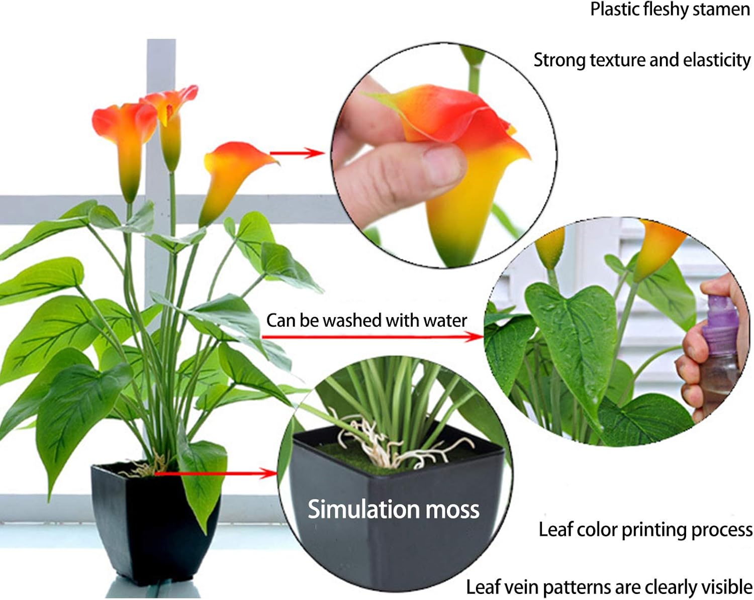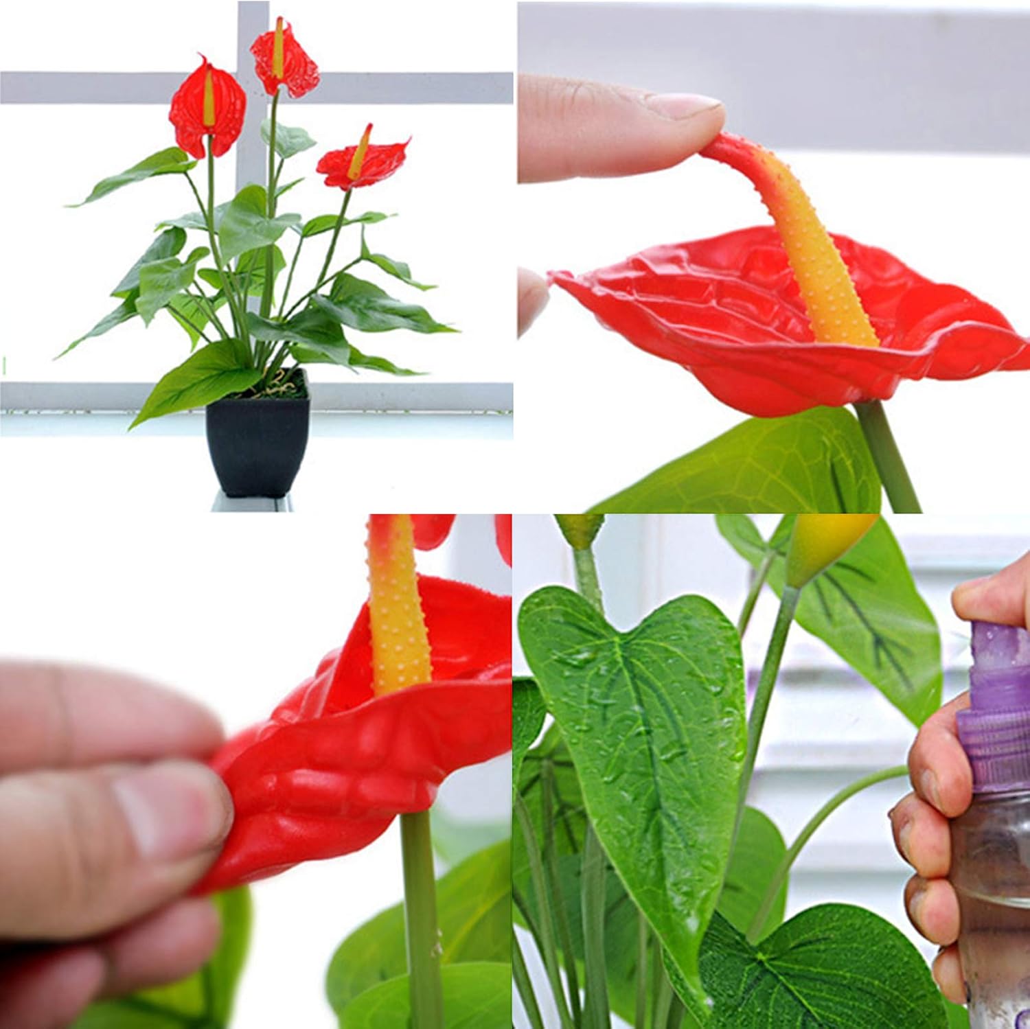 *Clear texture and realistic colors, it is washable and durable, more three-dimensional than ordinary Anthurium.*Representing hospitality and love, the heart shaped pink flowers add a bright pops of color and make a beautiful addition to a home or office.*Don't need to watering, feeding, or trimming but remain it's fresh and beautiful looking for a long time. Saving your lots of time, money, and energy.Specification: Material: PlasticSize: 14 inchColor: RedPackage Includes: 1 x Faux Flower