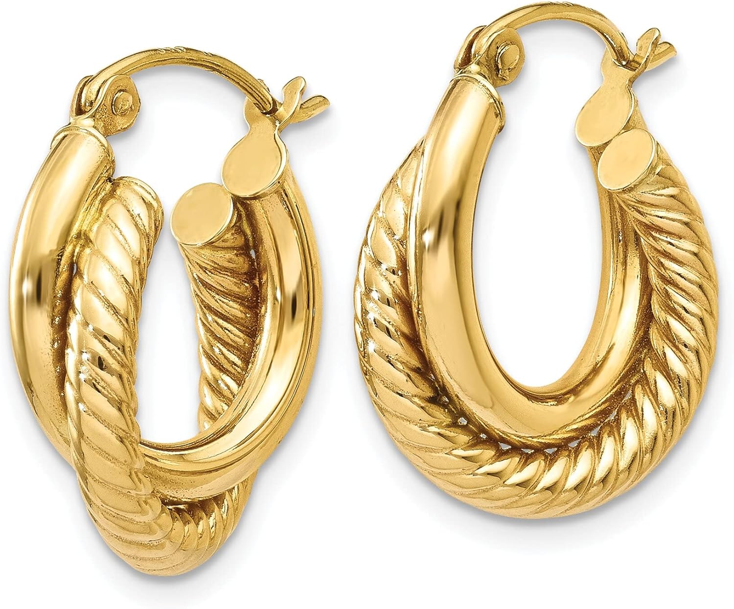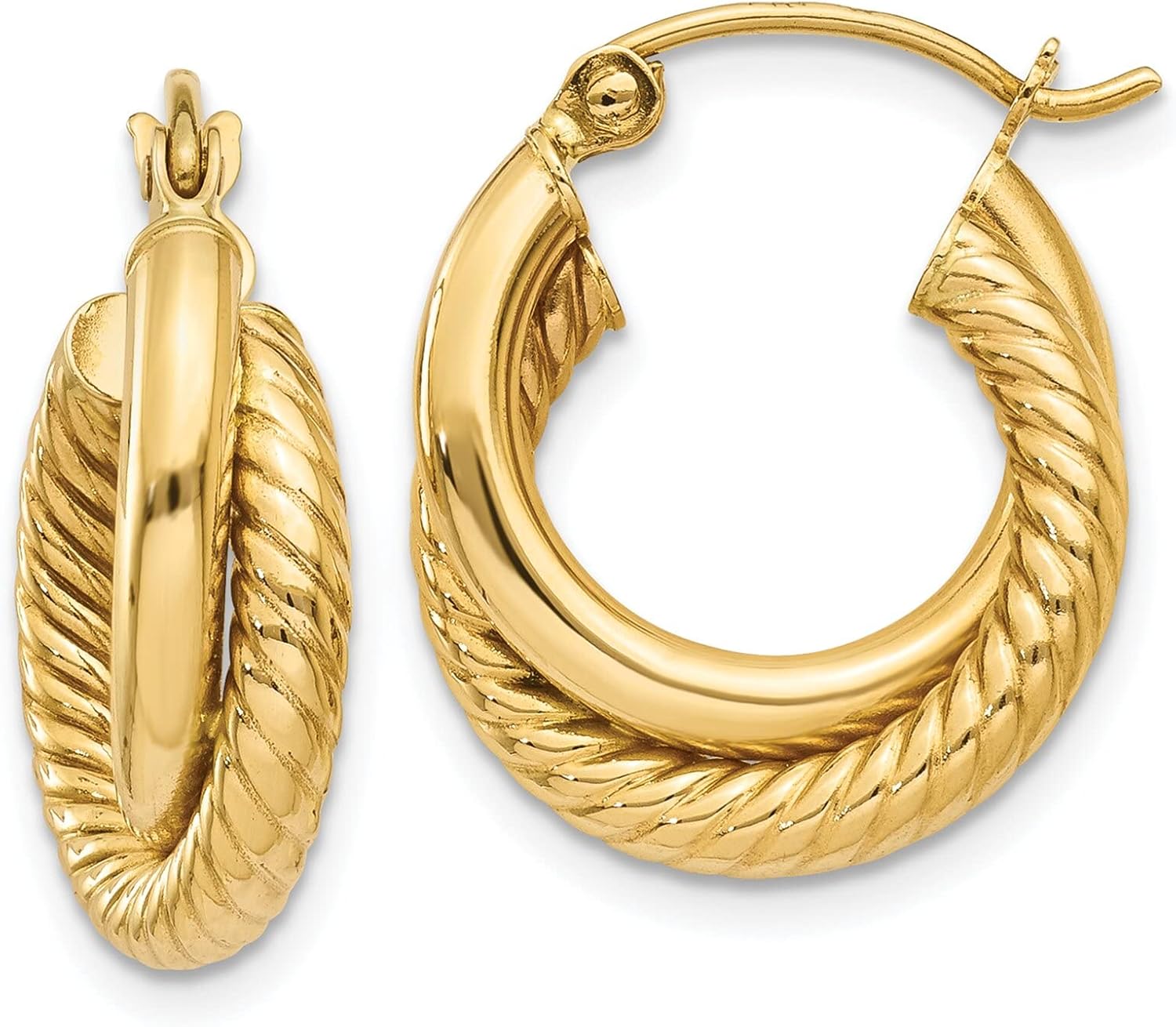 This is a beautiful new pair of 14 karat yellow gold twisted hoop earrings. They are a great gift for yourself or a loved one and make the perfect addition to any jewelry collection. Metal- 14K Yellow Gold Origin- United States Stamped- 14K Solid/hollow- Hollow Finish- Polished Approximate Length- 20 mm (15/16") Approximate Width- 16 mm (5/8")