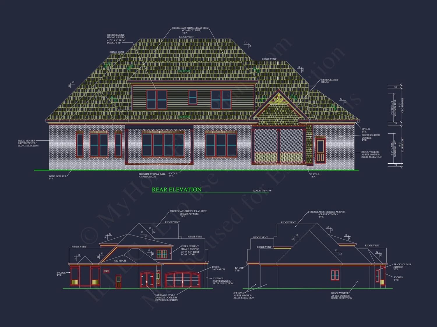 Elegant French Country & Traditional House Plan with Stone and Brick ExteriorThis beautifully designed French Country residence blends timeless architectural character with the refined proportions of Traditional design. With 4 bedrooms, 5 bathrooms, and 4,528 heated square feet, this home offers generous living spaces, exceptional curb appeal, and a versatile layout ideal for modern families. Its mix of stone, brick, and rich wood accents delivers a warm, enduring exterior that feels rooted in classic European craftsmanship.Architectural OverviewInspired by French Country estates, this home presents steep gabled rooflines, balanced symmetry, and a palette of natural materials that complement the surrounding landscape. The elevation showcases an inviting front entry, tall windows, and thoughtful detailing that give the facade a luxurious yet grounded presence. Those who appreciate European craftsmanship and Traditional American refinement will find this design an ideal combination.Main Living SpacesThe interior layout is created around an open-concept philosophy while still preserving intimate, well-defined areas. Large windows allow natural light to wash across the gathering spaces, and the main level includes:A spacious great room with fireplace and high ceilingsAn open chef-inspired kitchen with an oversized island and walk-in pantryA formal dining area positioned for scenic views and seamless entertainingEasy access to the covered rear veranda, perfect for year-round outdoor enjoymentOwner Suite & BedroomsThe first-floor Owner Suite is thoughtfully designed for comfort and privacy. Featuring tall windows, a large walk-in closet, and a spa-inspired bathroom, this private retreat enhances daily living. Upstairs, additional bedrooms include walk-in closets and optional shared or private bath configurations.Whether the home is used for a growing family, hosting guests, or multigenerational living, its