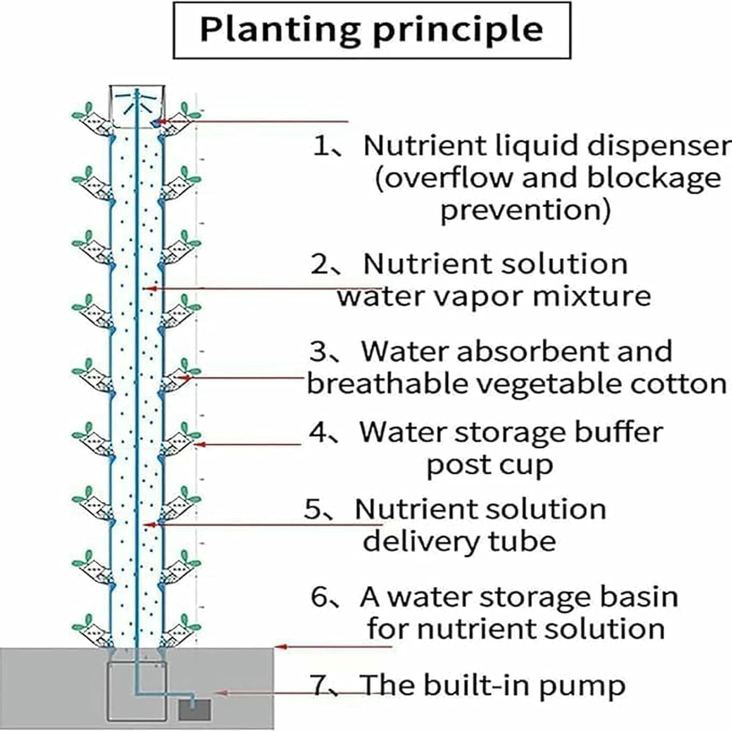 The hydroponic growing system is designed to encourage you to grow vegetables, flowers and fruits all year round, which is a fun and engaging experience. Its compact design also makes it the best choice for tight spaces.You can also use it to monitor the growth of vegetables at any time. From germination to seedlings to maturity, record every process of your own planting. In the family, too, grow with your kids and research how to grow healthy vegetables.Compared with traditional farming, the yield can be increased several times. Requires less water, less space.Specifications:Color: WhiteMaterial: Food grade ABSAperture: 60mmWater capacity: 30LProduct size: 40*40*154cmProduct weight: 7.5 kgPackage dimensions: 43 x 43 x 51 cmPackage includes:1 x Vertical Planting SystemNotes:Before purchg, please confirm the size shown in the description, please allow 1-2cm error due to manual measurement.