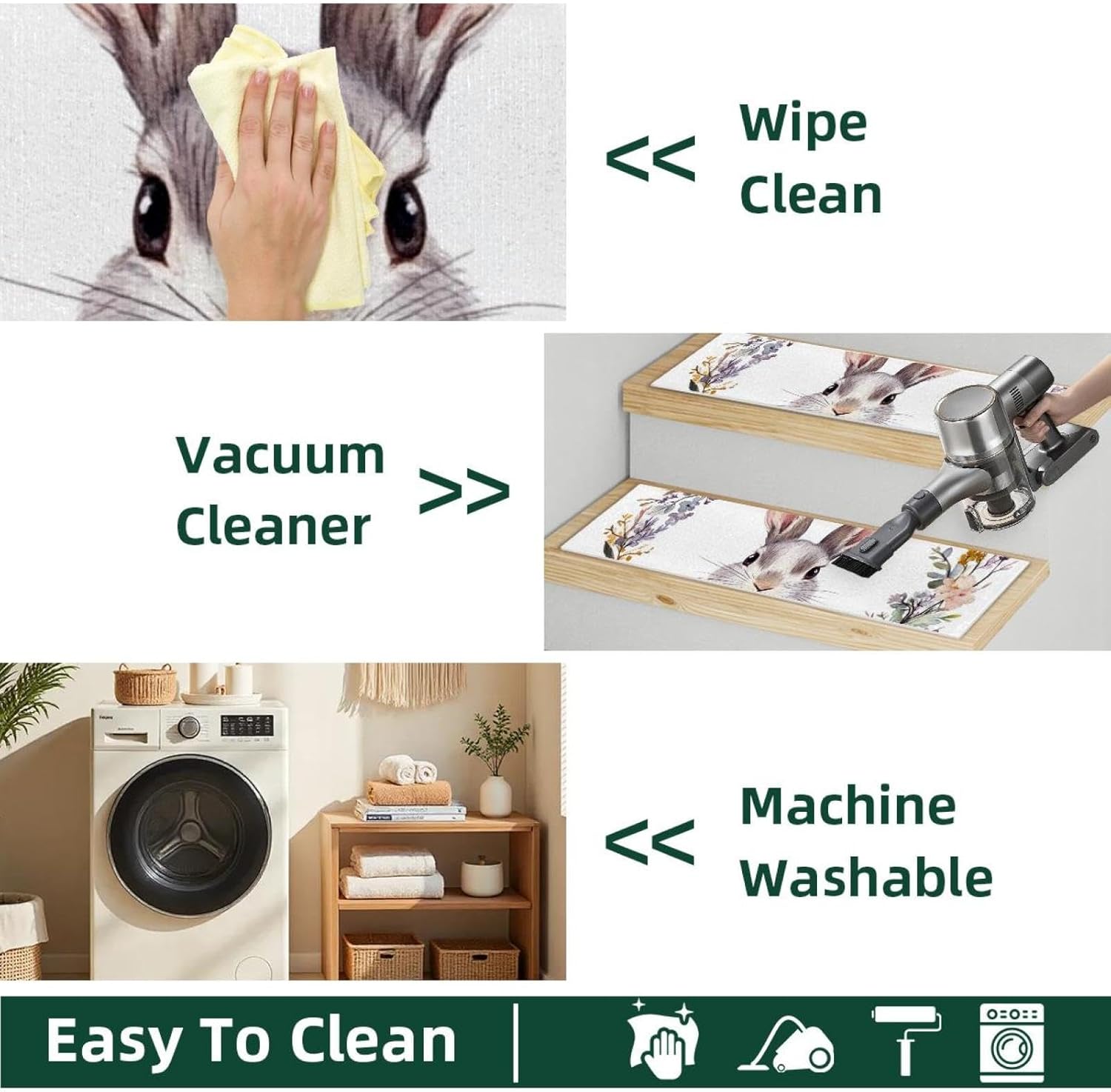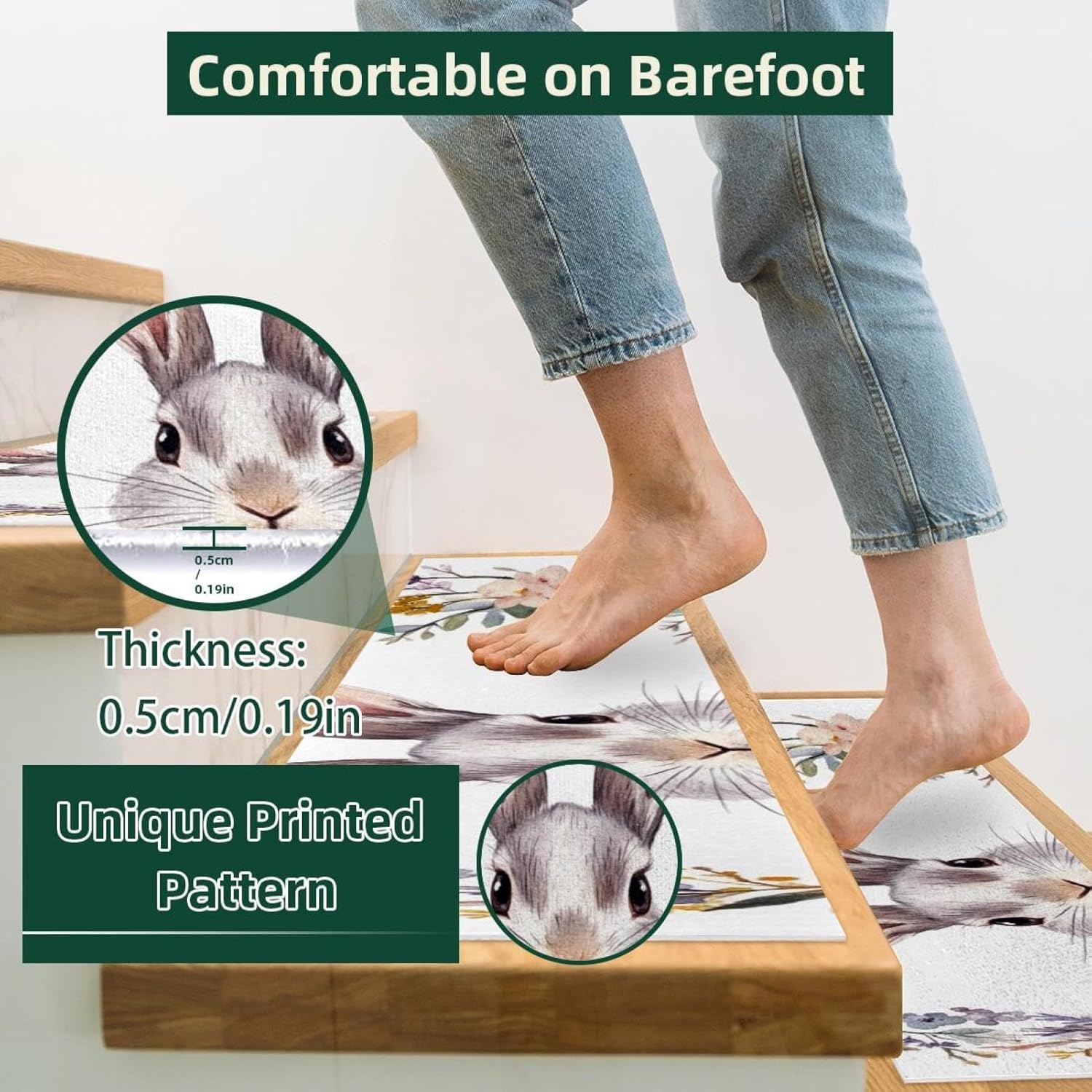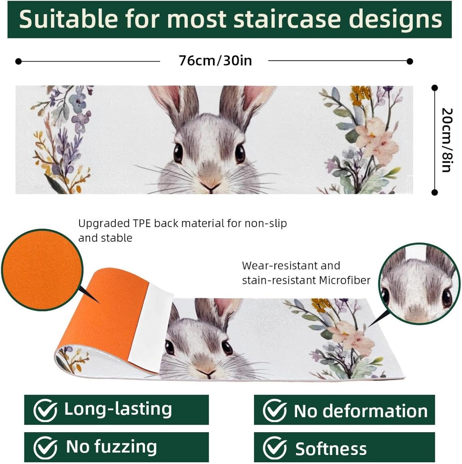 ・Size: 30 x 8 in / 76 x 20 cm, 5 mm thickness. ・Material: The polyester surface absorbs water, preventing stains on the floor. The TPE back is non-slip and water-resistant, preventing damage to the stairs. ・Package Contains: 15 pieces of 30x8in (about 76x20cm) stair mats, 5mm thick. Suitable for most needs. Each stairway treads rugs is individually wrapped. ・Easy to Clean: Vacuum, hand wash or machine wash. The stair runners for wooden steps can be machine washed, preferably hand washed, or vacuumed. Do not use bleach or tumble dry at high temperatures, drying at appropriate low temperatures will give you a comfortable texture. ・Noise Reduction of Stair Treads: By adding our stair runner, not only can you protect your floors, but you can also significantly diminish the noise caused by walking up and down the stairs. Stair rugs can decorate your stairs, create a warm home atmosphere, you can enjoy a peaceful and quiet home environment without disturbances. ・Easy to Remove Adhesive Backing: When you want to replace the stair treads non slip, the adhesive backing easily removes without leaving residue on the steps. ・Holiday Design: Stair carpet treads are designed specifically for Christmas,Halloween, Thanksgiving Day features classic festival elements and vivid printing styles,creating beautiful and stunning visual effects for you. This holiday themed stair treads can easily help you add a strong festive atmosphere, bringing charming and exquisite holiday decorations.