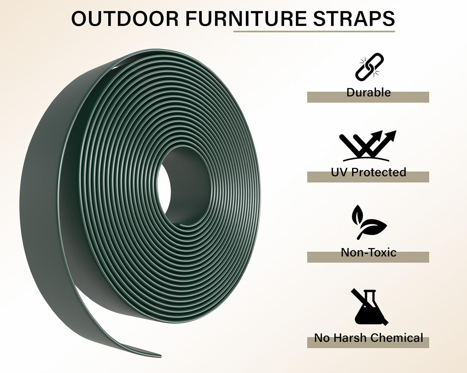 Upgrade your outdoor furniture with our premium vinyl straps for patio chairs kit, designed for durability, style, and ease of installation. Made from commercial-grade, 100% virgin vinyl, these straps include special inhibitors to withstand outdoor elements, ensuring they remain strong and vibrant over time. With a width of 1 1/2'' vinyl chair strapping and a generous length of 100 feet, this product is a perfect solution for vinyl chair strap replacement or vinyl strap lounge chairs repair. Its matte finish and stylish Dark Green color make patio chair repair strapping an excellent choice to refresh the look of your patio furniture, providing a sleek, modern touch.Perfect vinyl strapping for patio chairs Our vinyl strapping for outdoor furniture is incredibly easy to install, allowing you to create custom vinyl replacement straps for outdoor chairs. Repairing replacement straps for patio chairs has never been simpler or more cost-effective. Whether you’re fixing up patio lounge chairs, outdoor seating, or lawn furniture, this product delivers exceptional quality and performance. Built for heavy-duty use, the straps are 0.115" thick, ensuring long-lasting strength and support. Manufactured with vinyl straps for patio chairs repair in mind, they’re ideal for restoring the functionality and appearance of your outdoor furniture. You can enjoy your revamped patio space in no time. Bring new life to your outdoor furniture with our vinyl strap replacement solution — durable, stylish patio chair strap repair kit and designed to fit your needs perfectly!