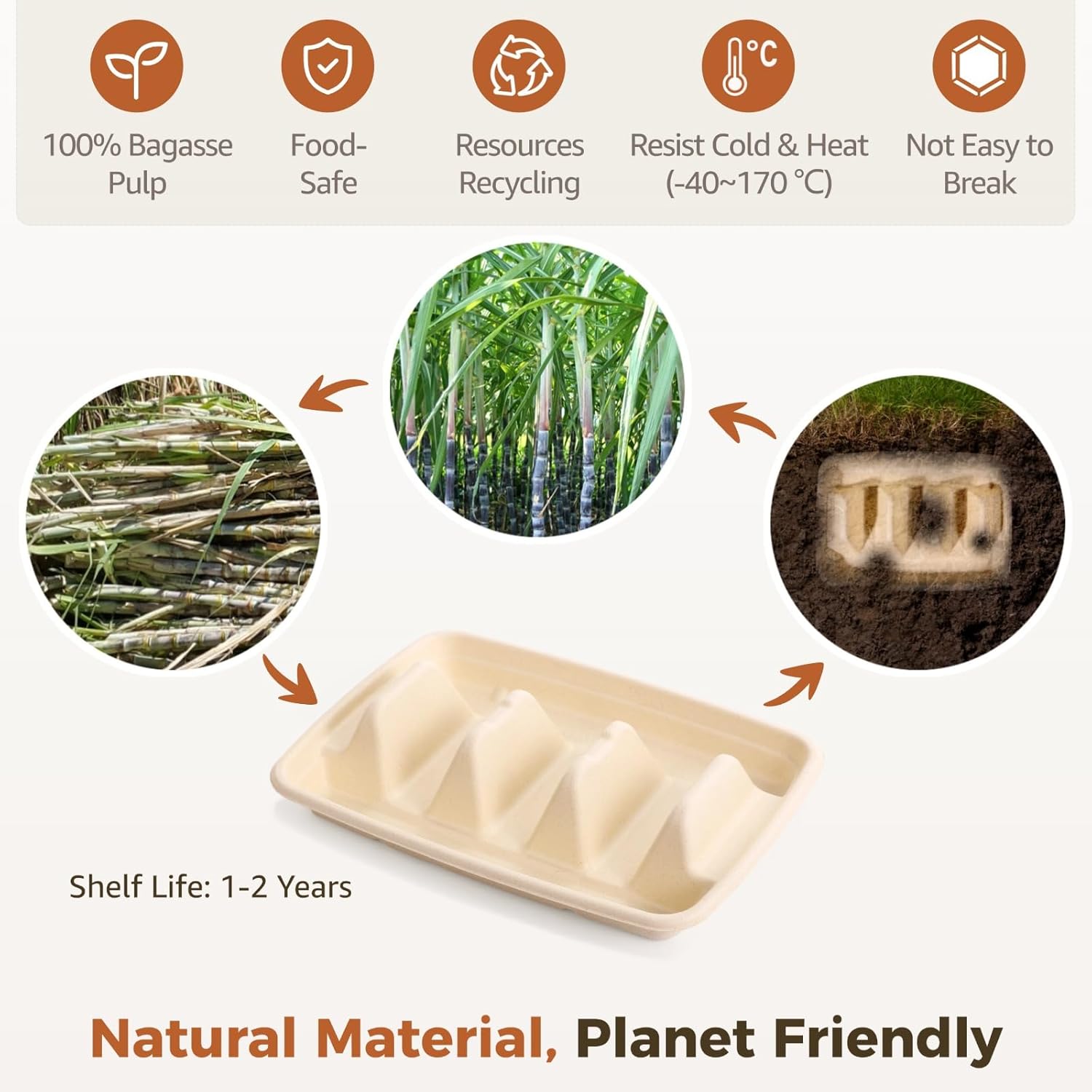 | Material Features | Biodegradable, Compostable, Disposable, Natural, Recyclable |