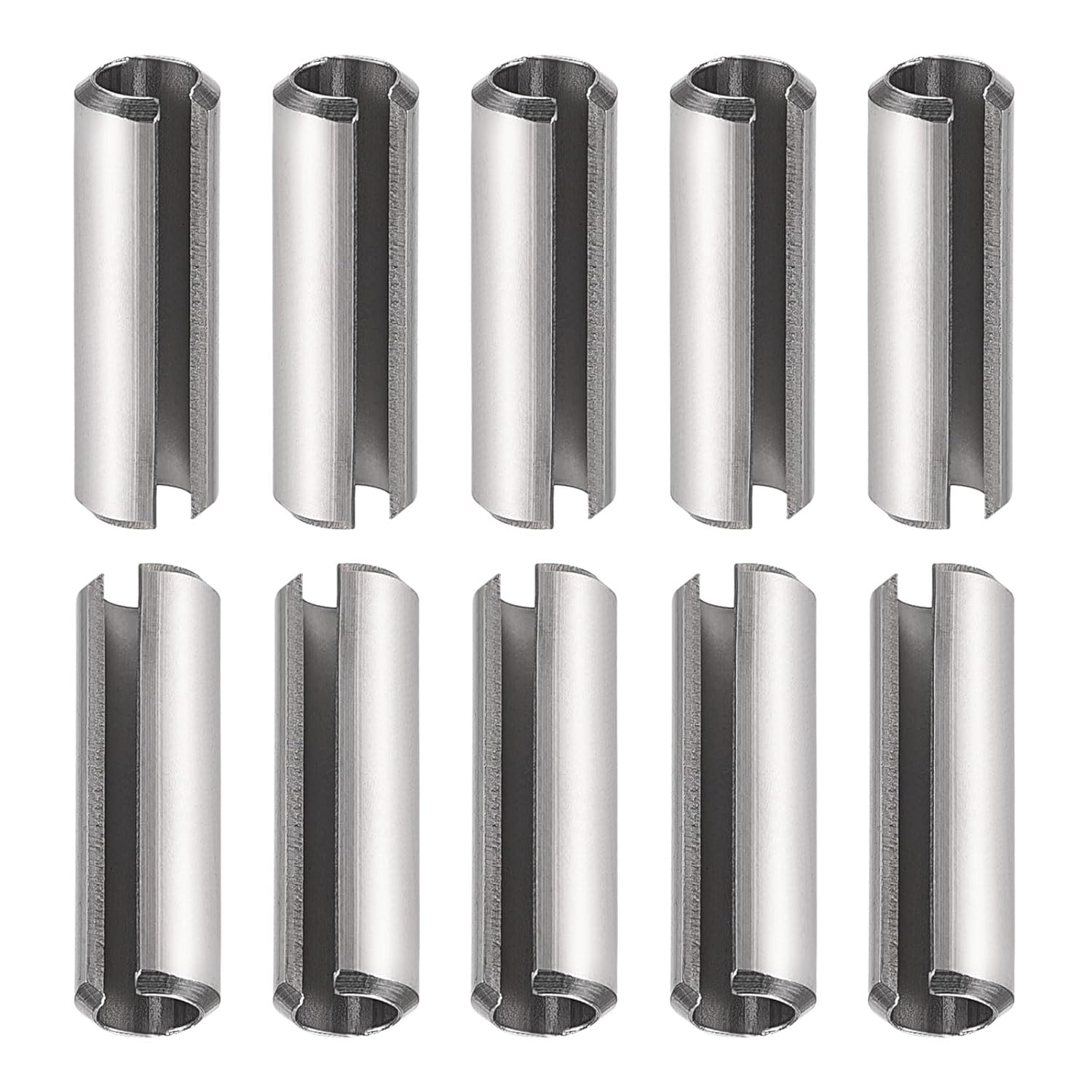 Product Details:Color: SilverMaterial: 304 Stainless SteelLength: 6mm/0.24"Dia: 1.5mm/0.06"Thickness: 0.3mm/0.01"Package Includes: 20 x Slotted Spring PinMaterial - Our spring steel pin metal is made of 304 stainless steel, for flexibility, balance, durability. Smooth surface, excellent workmanship, durable.Feature - Our fasteners with two chamfered ends mount flush with the hole, for the positioning, connecting, and fixing between the parts.Application - Applicable for valves, mechanics, electrical appliances, spraying, doors, bearings, machinery power equipment, cars, trucks, lawn mower, small engine repair, fastening, etc.Install Steps - Easy to insert and remove, these spring pins exert uniform outward pressure to secure the position of your machine components.