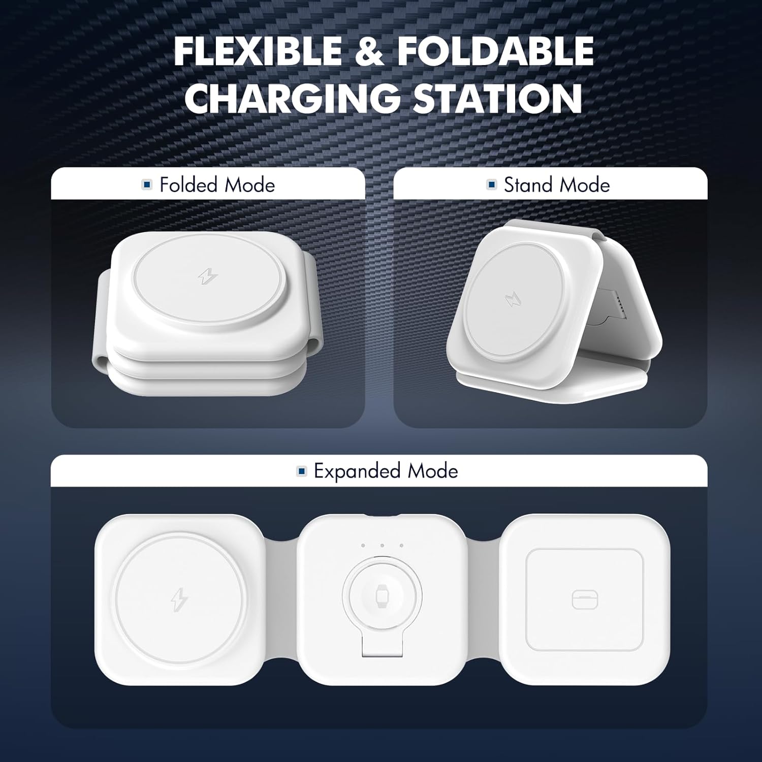 Charging Station for Multple Devices: Wireless 3 in 1 Foldable Mag-Safe Charger for Travel and Desk Nightstand, Charger for iPhone 16 15 14 13 Pro Max, for Apple Watch Series for AirPods 4 3 2 pro