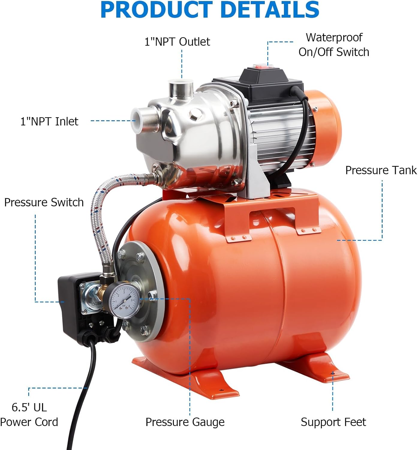 | Included Components | Shallow Well Pump with Pressure Tank |