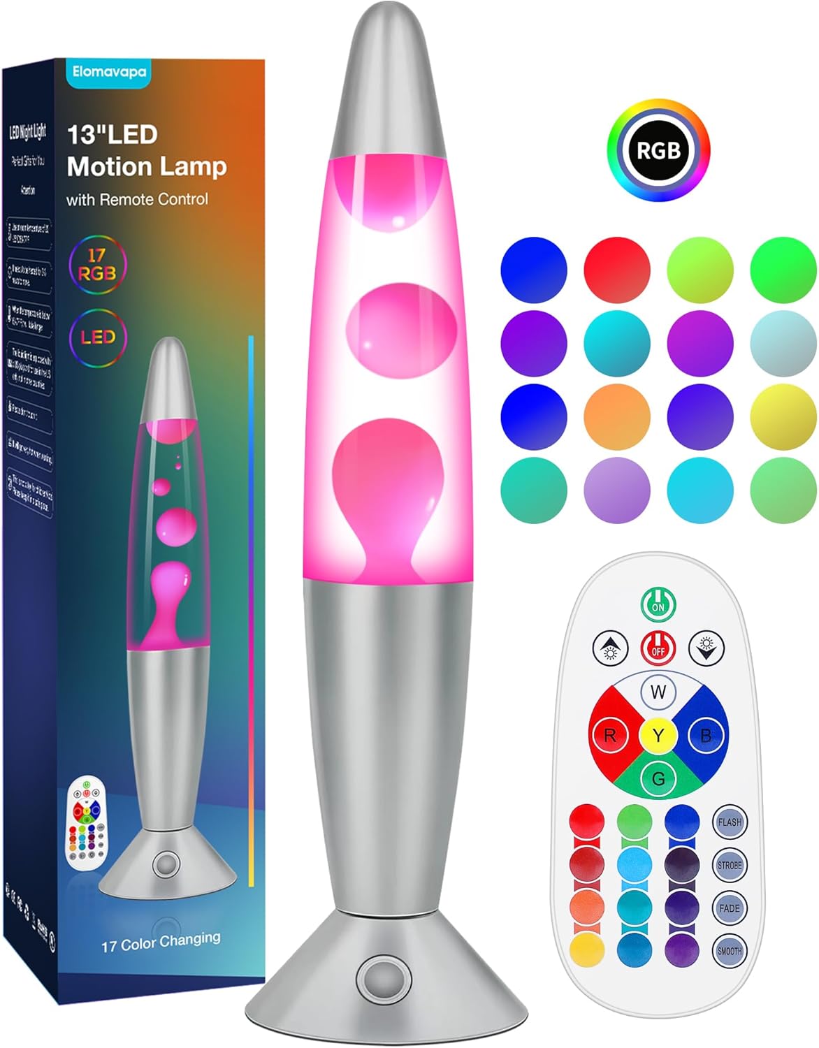 | Included Components | LED Base & Cap, Liquid Motion Lamp with White Wax, On-Off Switch, Power Cable, Remote Control |