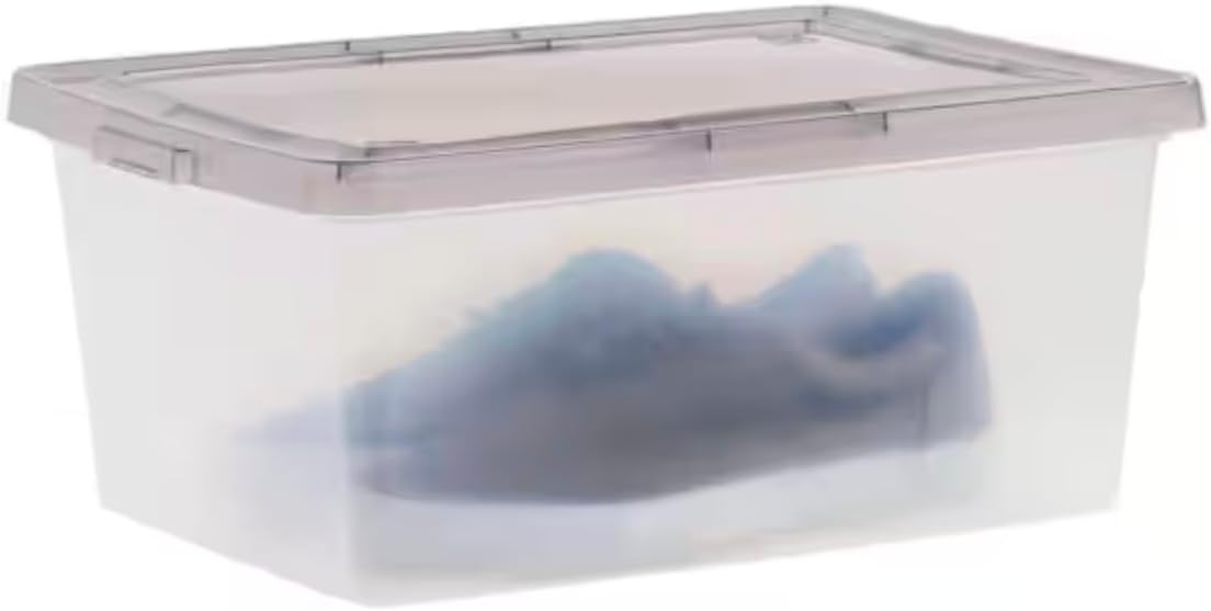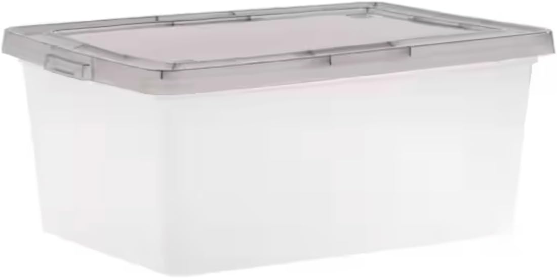 Put a lid on your clutter with this convenient snap-tight storage box. This versatile 17-quart size is perfect for organizing shoes, accessories, crafts, and more. The snap-tight lid ensures that your items are secure, and the ultra-clear body allows for easy content visibility. This set of eight stackable boxes can maximize your storage space. The dimensions are 16.43 inches in length, 11.75 inches in width, and 7 inches in height.