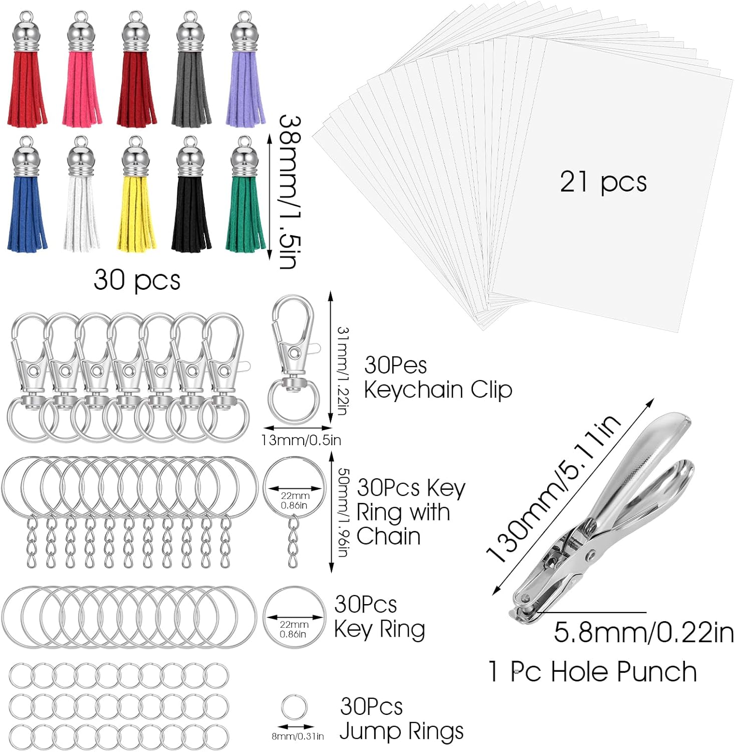 | Included Components | 20 x Shrink Art Paper sheets, 20 x keyring tassels, 30 x keyring with chain, 30 x keychain clips, 30 x split key rings, 30 x jump rings, 1 x hole punch |