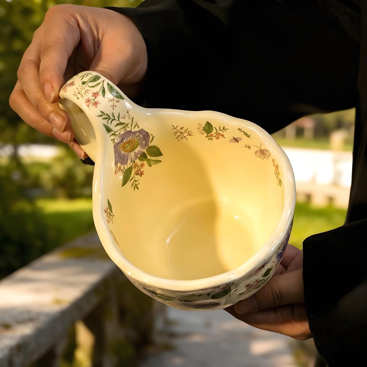 | Product Style | Gesang Flower and Butterfly - Hand Painted Loop Handle Soup Bowl with Spoon |
