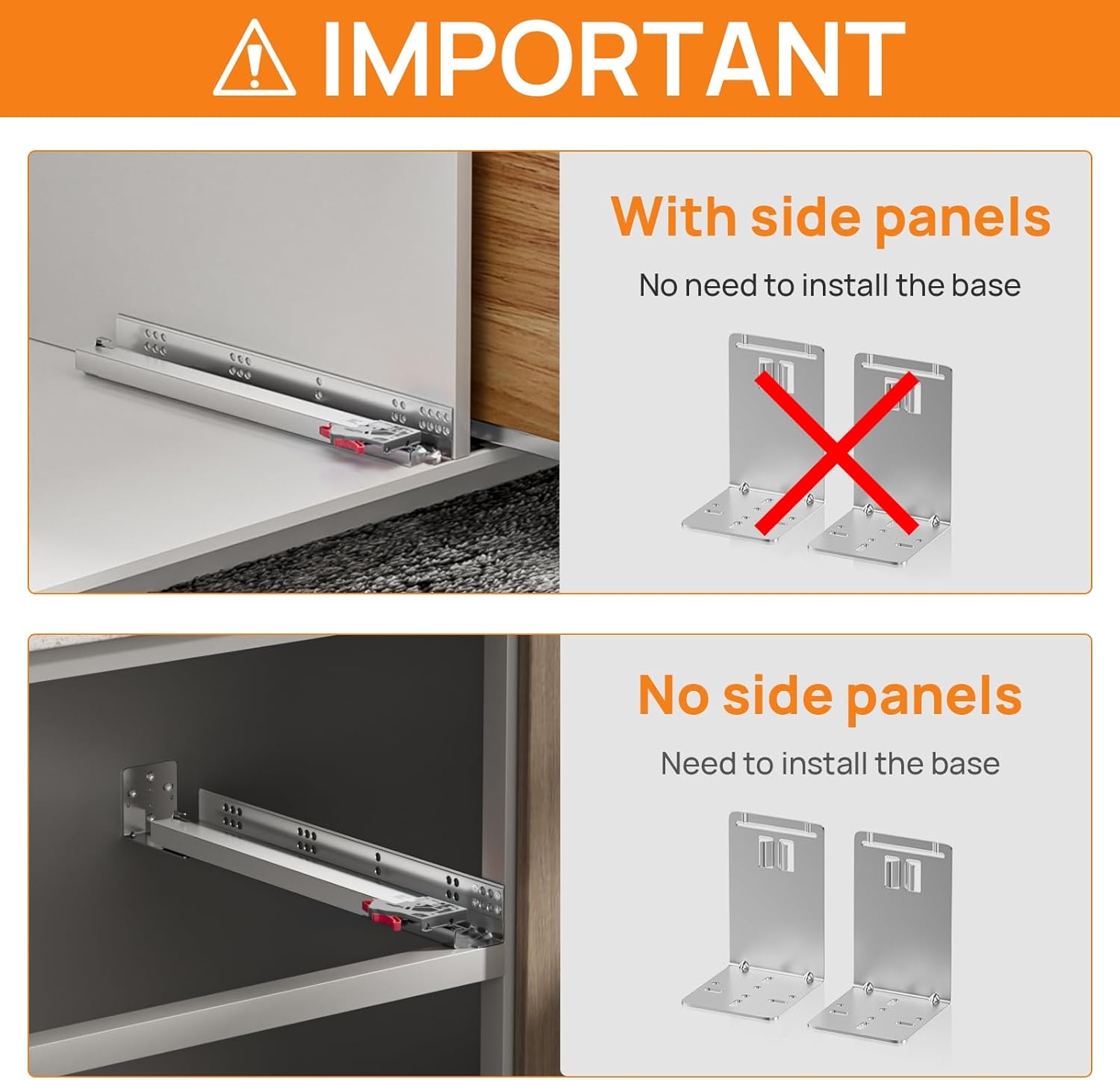 | Included Components | Rear bracket, soft close drawer slides |