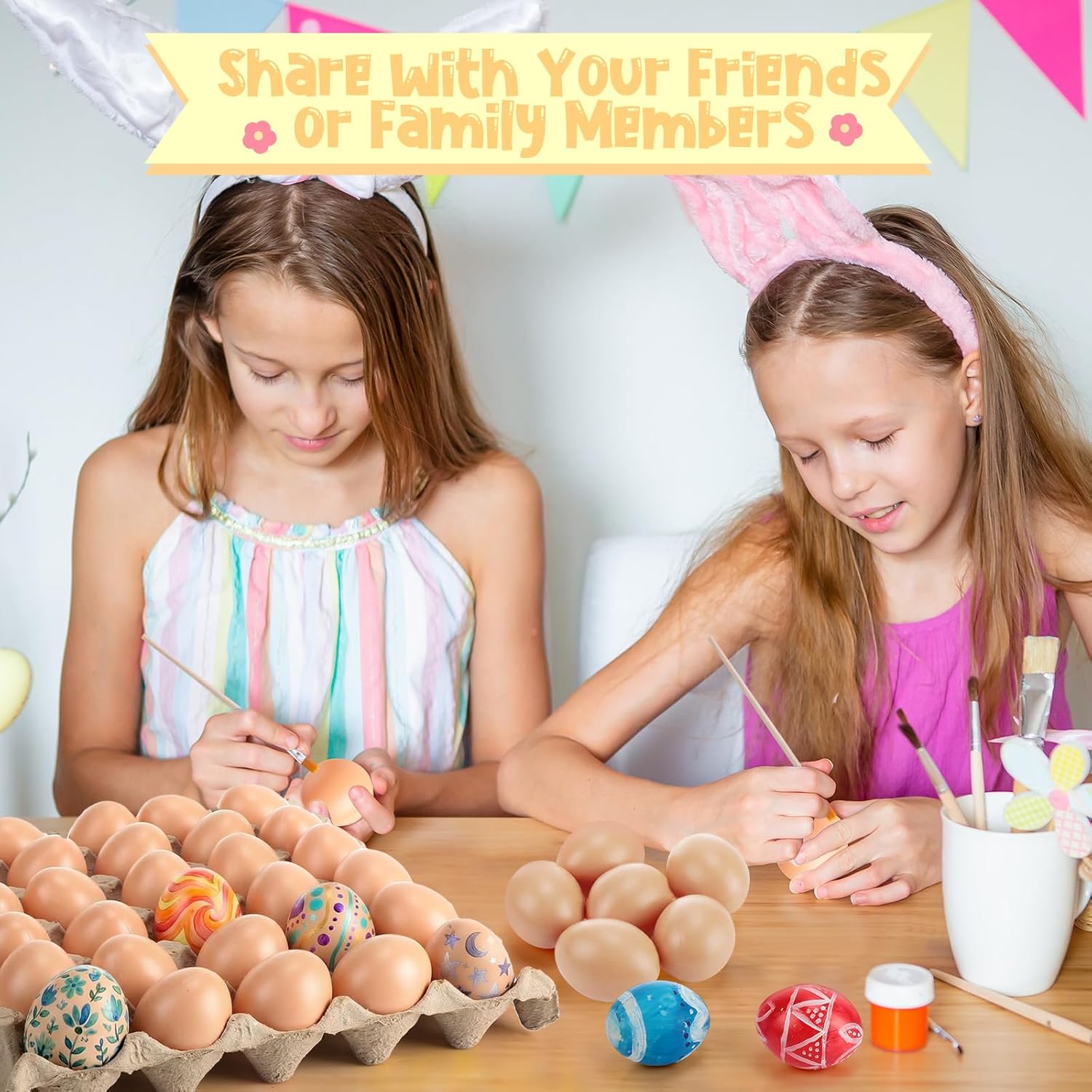 Features: Nice gifts: These fake Easter egg decorations are suitable for sending to your friends, colleagues, relatives, neighbors, family members and others you care and love, they will be happy to receive these gifts. Bringing in spring vibes: Nothing says springtime festivities like crafting with the fake egg to paint. Not just for Easter, it is a creative and playful way to welcome the fresh, vibrant atmosphere of spring into your home. Enjoy the warmth of the season while indulging in some crafty fun. Specifications: Material: Easter eggs: plastic Egg cartons: paper pulp Color: Easter eggs: brown Size: Easter eggs: approx. 2.17 x 1.69 inches/ 5.5 x 4.3 cm Egg cartons: approx. 11.6 x 11.6 x 1.97 inches/ 29.5 x 29.5 x 5 cm Package includes: 180 x Plastic Easter eggs 6 x Egg trays Notes: Manual measurement, please allow slight errors on size. The color may exist a slight difference due to different screen displays. Suitable for people over 12 years old, and it's recommended to use under the supervision of adults in case of choking risk.