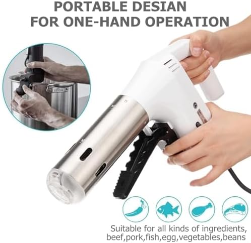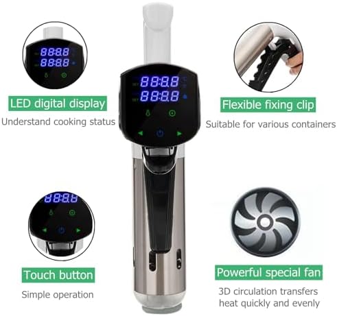 Experience culinary excellence with our Stainless Steel Wifi Sous Vide Cooker, perfect for home cooks and culinary enthusiasts alike. This precision cooker features a full touchscreen control panel and an LED digital display, making it easy to achieve precise temperature and time settings. Whether you're crafting a tender steak, juicy chicken, flaky fish, or vibrant vegetables, our sous vide cooker unlocks a world of flavor and texture. Designed for convenience and enhanced cooking, our 1800W sous vide cooker heats rapidly and accommodates large 20L bath sizes, ideal for meal prep or entertaining. With a temperature range of 25°C to 92.5°C (77°F to 198.5°F) and exceptional stability of ±0.1°C/℉, you can trust that your meals will turn out perfectly every time. Constructed from high-quality stainless steel and food-grade materials, this sous vide cooker is durable and built to last. Its IPX7 waterproof rating ensures safe operation, allowing you to focus on creating delicious dishes worry-free. Compactly sized at 171x80.4x341mm (6.7*3.2*13.4in) and weighing just 1.9kg, it fits seamlessly into any kitchen. Included in the package are essential accessories: a power cord, two durable clips for securing your bags, and a user manual to guide you through your sous vide journey. Elevate your cooking experience and impress family and friends with perfectly cooked meals, all at the touch of a button. Upgrade your kitchen with our Wifi Sous Vide Cooker and discover the transformative power of precision cooking.