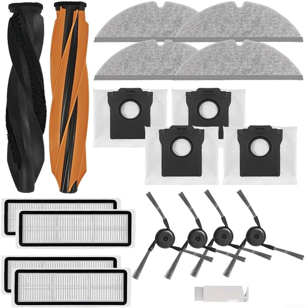 Features:*Filters:The filters are essential components of the vacuum cleaner. They efficiently capture dust and other particles, providing you with cleaner and healthier air.*Mop Cloths:With the mop cloths, the vacuum cleaner can not only sweep but also mop your floors. The high-quality cloths for ensure efficient and thorough mopping, leaving your floors spotless and shiny.*Side Brushes:Equipped with side brushes, the vacuum cleaner can effectively clean along edges and corners. The brushes reach deep into hard-to-reach areas, no dust or debris is .*Easy Installaltion:No need for professional help or additional tools. Our components are designed for direct replacement, making installation quick and effortless.*Sturdy Material:Made of high-quality materials, the replacement part is long-lasting and sturdy, not easy to break and tear for providing long service life. Specifications:*Product Name:Replacement Accessories Kit *Material:Nylon+Plastic+Microfiber+Filter PaperSize:NOColor:As Pictures ShowFitment:For DREAME D20 Plus Vacuum CleanerNumber of Pieces: 1 Double Roller Brush + 4 Side Brushes + 4 Filters + 4 Mop cloths + 4Dust bag+1* Cleaning Tool Package Content:1 Double Roller Brush + 4 Side Brushes + 4 Filters + 4 Mop cloths + 4Dust bag+1* Cleaning Tool