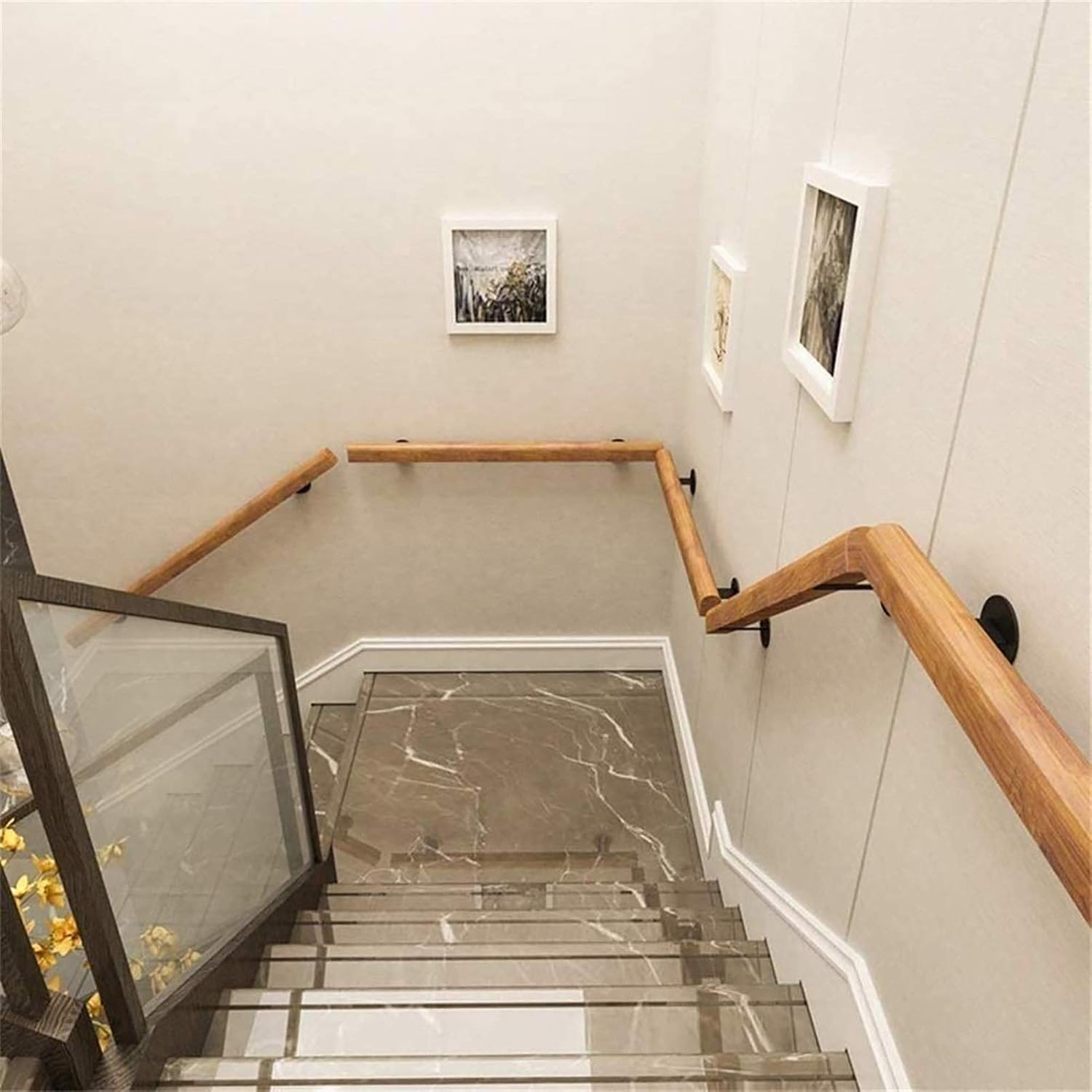 ★This handrail is a fantastic helper for going up and down stairs. Hold on tight and support yourself as you ascend or descend. It is especially useful for children, adults and those who struggle to use stairs. provide extra security on stairs, home and garden or balcony.★ Product parameters:- Material: wrought iron + Pine wood- Color: solid wood spray paint- Style: simple, industrial style- Length: 1ft-20ft / 30-600cm(1ft=30cm, You can also combine multiple kits to create longer lengths, support custom size)- Suitable for the people: Handicap, Bath Handle, Elderly, Children's, Disabled, Injury, Shower Assist, etc- Packing accessories: 1 x wooden strip, 2 x base, 1 x connector, screws, flanges and complete mounting accessories★ Railings for indoor and outdoor use- Available both indoors and outdoors- Suitable for indoor surfaces- for the garden- Suitable for indoor stairwells, home doors, etc★★★Tips1. Welcome to our shop ! If you have any specific product queries, please contact ours.2.When measuring manually, the product size may show a physical error of 2-3 cm.3. The product is divided according to the length: the size between 1ft-4ft is divided into one section, the size between 5ft-20ft is divided into multiple sections4. Sold directly by the manufacturer, Support multiple purchases