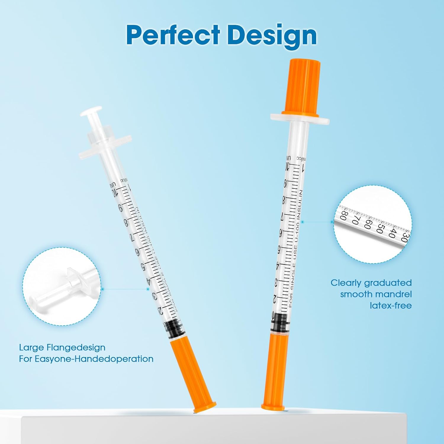 1ml 30G 5/16 Inch 8mm Syringe, U-100 Lab Syringes Individually Wrapped,Pack of 100