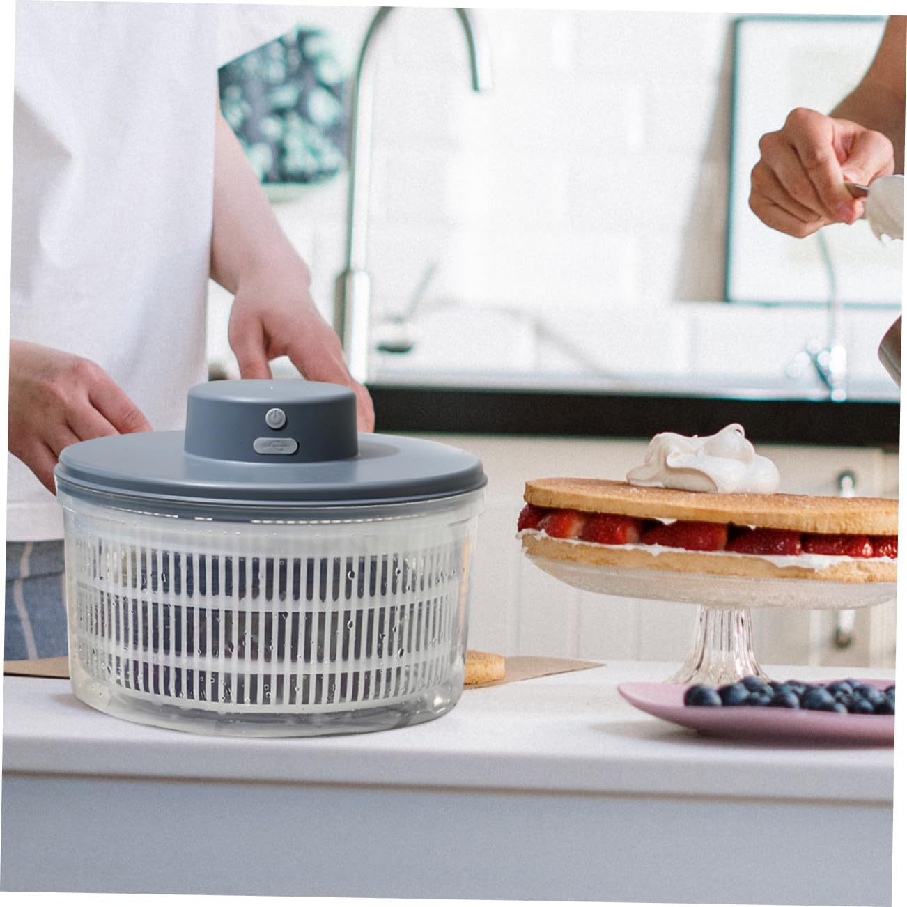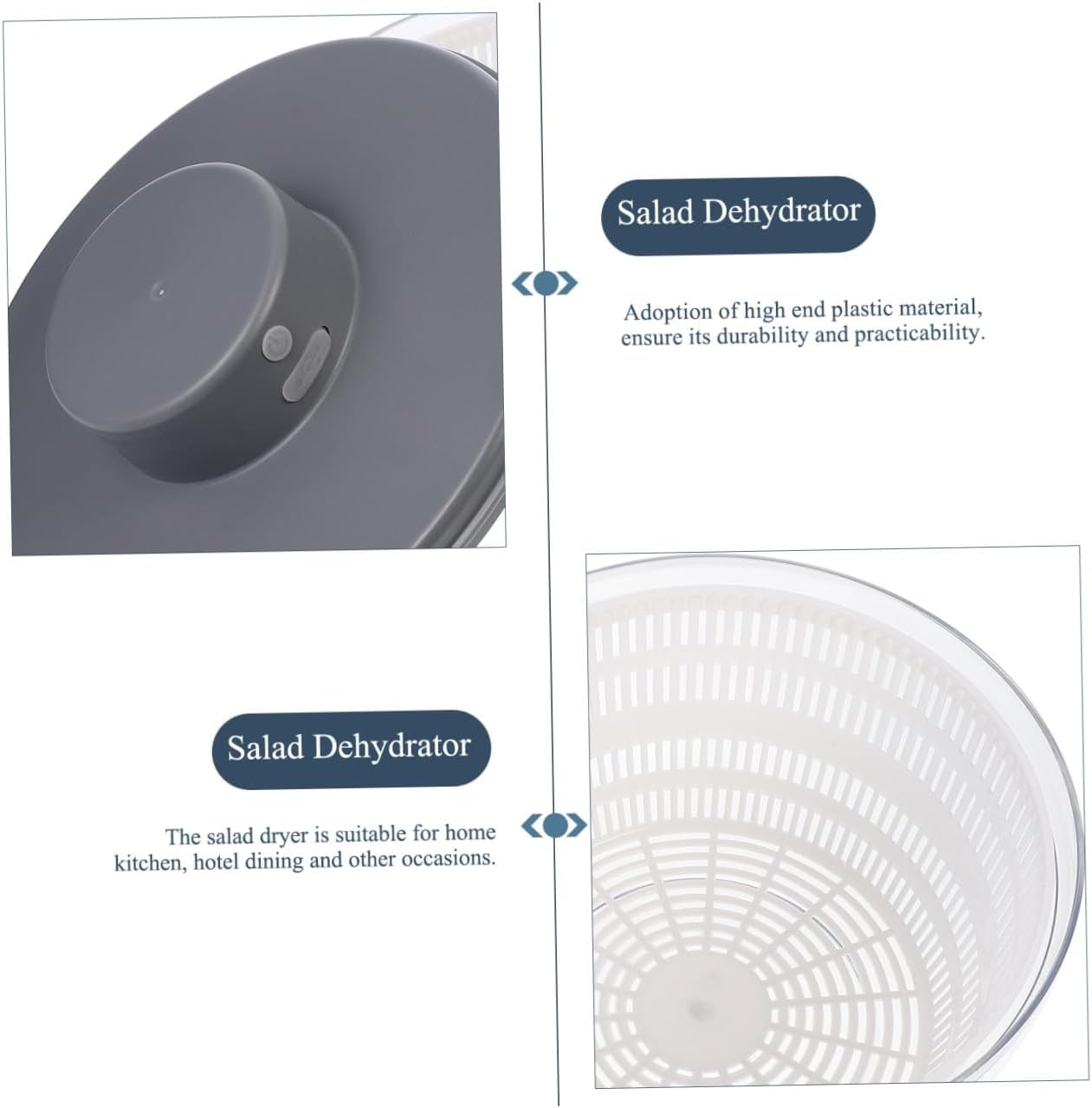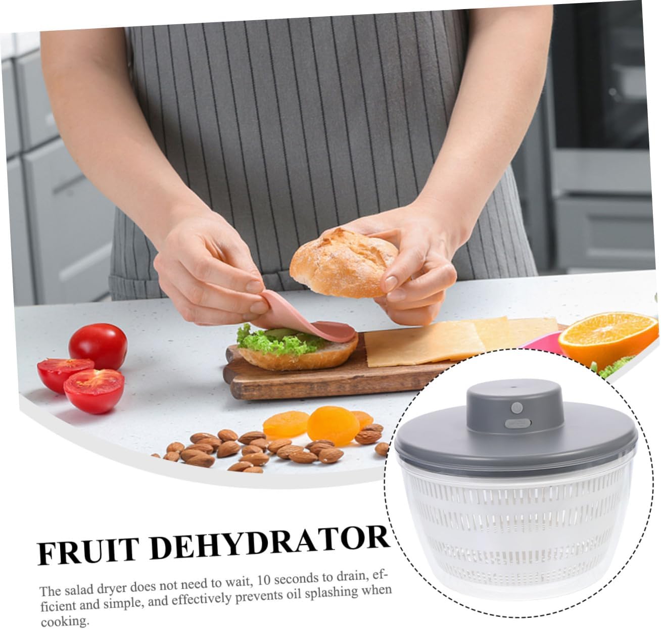 Package Include 1 x Vegetable Dehydrator Features - Capacity: 3L electric vegetable dryer. - Material: PP vegetable dryer bowl. - Voltage: 3.7V food dryer. - Battery: 1200mAh dehydrators for food. - Size: 23.00X23.00X19.00cm/9.04X9.04X7.47 inch fruit dehydrator. - Power: 20W household fruit drainer salad dryer. - Made of premium plastic material, and for use. food dehydrator machine - Can be used in home kitchens, hotel catering, fast drying and dehydration of vegetables and fruits Vegetable Dryer. - Great for removing water from dumpling stuffing or vegetable etc food dehydrated machine. - The salad dehydrator can be used more than 100 times with one charge, that is, it only needs to be charged once a month! food dehydrator and dryer - Multi-functional vegetable washing and draining basket 3000ml large-capacity design, increasing the capacity, washing vegetables and fruits time, convenient and quick, and multi-purpose food-dehydratorsGoods Informationsalad dryer A for every housewife, friends, family and co-worker, etc.dehydrators for food Not only just drain basket, but also storage basket for holding fruits, vegetables, etc.vegetable and fruit dehydrator material, perfect for being used to wash and sieve rice, vegetables, fruits etc