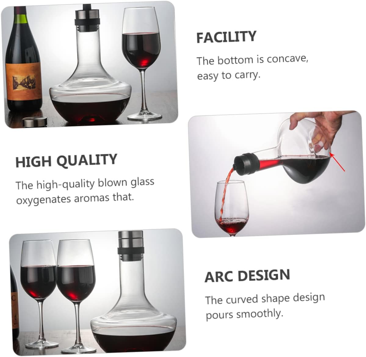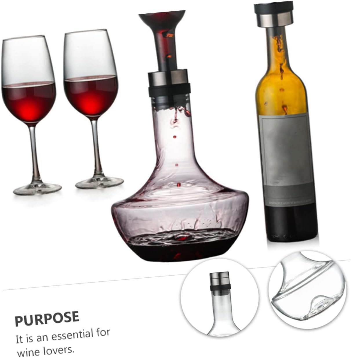 Package Include 1 x Wine Decanter Characteristics - Material: Glass whiskey decanter for bar - Size: 17.50X17.50X25.00cm/6.88X6.88X9.82in fast wine decanter - Suitable for home, parties, bars and any other occasion large decanter. - ColorTransparent whiskey decanter - Made of glass materials, , not easy to break brandy decanter. - Also a container for storing wine or other beverages for a long time glass wine decanter. - Perfect for holding beer, vodka, whiskey, etc household decanter. - Creative shape design, modern and elegant, improving your drinking experience wine decanter.Goods Descriptionhandheld wine decanter Innovative design allows connecting the wine bottle with the glass wine decanter.household decanter It is different from the traditional decanter.glass decanter You only need to wait for about 3-5 minutes when using this product, avoid the longer waiting time