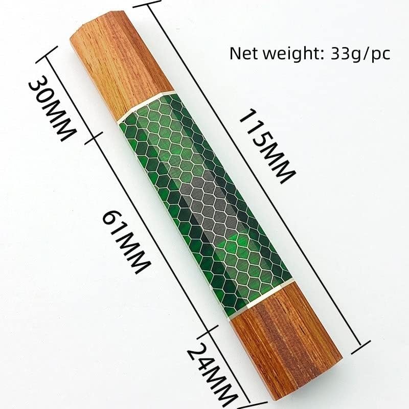 Material: rosewood + white copper + resin honeycombDimensions: front width 13.5MM*height 18.1MM, handle hole width 2MM*height 7MM; rear width 16MM*height 21.1MM; overall handle length 115MM, insertion depth into the handle 54.4MM(#9, see detailed picture)Net weight: about 33G/PCNotice:1. Japanese octagonal knife handle - the surface is made by CNC machinery. After receiving the goods, it needs to be polished with sandpaper and polished with a hair wheel before use.2. Since the texture and color of the honeycomb material surface will change randomly, it will be subject to the receipt of the goods and will not be selected for delivery!