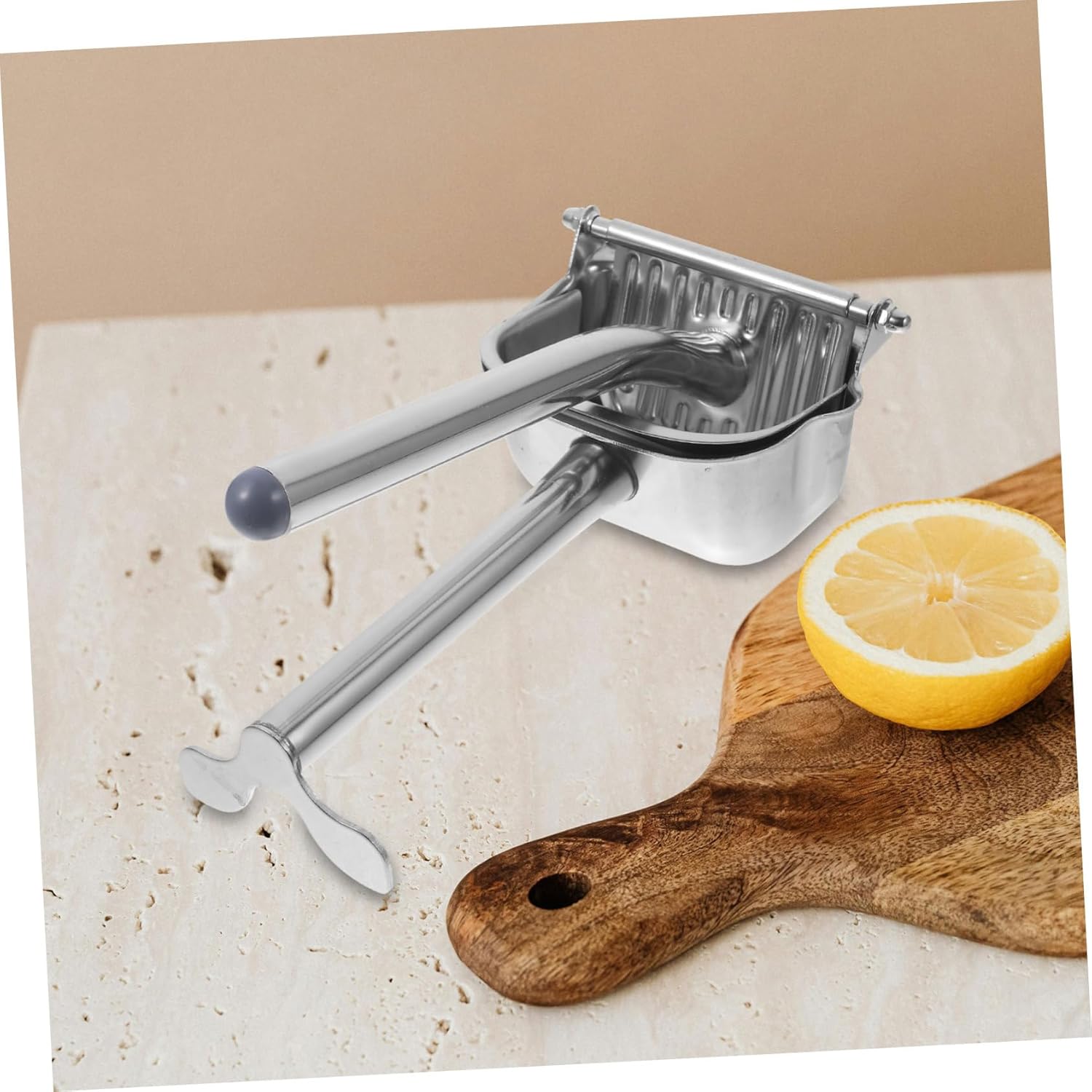 Package Include 1 x Manual Juicer Characteristics - Color: Silver manual squeezer. - Material: Stainless steel Juice Squeezer. - Note: The style of the handle is random manual juice extractor - Size: About 24.50X13.00X8.00cm/ 9.63X5.11X3.14inch small manual juicer. - Perfect for various orange, lemon and other suitable fruits fruit press squeezer. - The compact juicers are for home, camping, picnic and other occasions metal lemon squeezer. - Manufactured with , and enough to use. handheld squeezer - U-shaped filter tip, convenient to pour out the juice in a concentrated manner, without dripping fruit juice squeezer. - Easy to decompose, slag and juice separation, simple and quick, easy to clean metal hand press juicer.Goods Informationmanual fruit juicer Perfect for various orange, lemon and other suitable fruits.manual juicer squeezer This is a manual juicer, which is manufactured with premium stainless steel material materials, and enough to use.easy to squeeze manual juicer The compact juicers are for home, camping, picnic and other occasions