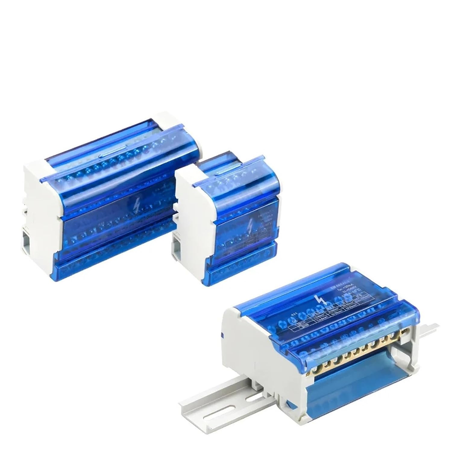 Terminal BlocksWDH207/211/215/407/411/415 Din Rail Terminal Blocks Modular Screw Connection Power Distribution Block Box Universal Electric Wire Junction BoxUKK80A690V/80A1 input 6 outputL65/H47/W29.5 mmInput: 1 x 16mm²Output: 4 x 6mm²2 x 16mm²BUYUKK125A690V/125A1 input 6 outputL74/H47/W29.4 mmInput: 1 x 16mm²1 x 35mm²Output: 6 x 16mm²BUYUKK160A690V/160A1 input 6 outputL74/H47/W29.4 mmInput: 1 x 70mm² 1 x 16mm²Output: 6 x 16mm²BUYUKK250A690V/250A1 input 11 outputL96/H50/W47.8 mmInput: 1 x 120mm²Output: 2 x 35mm²5 x 16mm²4 x 10mm²BUYUKK400A690V/400A1 input 11 outputL96/H50/W47.8 mmInput: 1 x 185mm²Output: 2 x 35mm² 4 x 10mm²5 x 16mm²BUYUKK500A690V/500A1 input 11 outputL96/H50/W47.8 mmInput: 3 x 15mm²8 x 24mm²Output: 2 x 35mm²4 x 10mm²5 x 16mm²BUYWDH207500V/125ACross section: 35mm²L67/H50/W45 mmHole Qty: 2 x 7Brass Bar : 6.5 x 12mmBUYWDH211500V/125ACross section: 35mm²L100/H50/W45 mmHole Qty: 2 x 11Brass Bar : 6.5 x 12mmBUYWDH215500V/125ACross section: 35mm²L134/H50/W45 mmHole Qty: 2 x 15Brass Bar : 6.5 x12mmBUYWDH407500V/125ACross section: 35mm²L67/H50/W90 mmHole Qty: 4 x 7Brass Bar : 6.5 x 12mmBUYWDH411500V/125ACross section: 35mm²L100/H50/W90 mmHole Qty: 4 x 11Brass Bar : 6.5 x 12mmBUYWDH415500V/125ACross section: 35mm²L134/H50/W90 mmHole Qty: 4 x 15Brass Bar : 6.5 x 12mmBUYTECHNICAL PARAMETERModel No.WDH 407/411/415Color Blue and GrayConnection methodScrew connectionMaterialFlame Nylon PA66, brass conductorRated Voltage/Current500V/125ADimension for Brass Conductor6.5*12mmQuantity of Hole4X7 /4x11 /4x15Mounting TypeDIN Rail NS 35StandardIEC 60947-7-1CertificationCE/RoHS/CQC/ISO 9001Model No.WDH 207/211/215Color Blue and GrayConnection methodScrew connectionMaterialFlame Nylon PA66, brass conductorRated Voltage/Current500V/125AQuantity of Hole2X7 /2x11 /2x15Dimension for Brass Conductor6.5*12mmMounting TypeDIN Rail NS 35==========Hign-concerned Chemical : NoneConductor Size : 1- 5 AWGNumber of Contacts : 1 - 10Model Number : WDH207/211/215/407/411/415Type : ScrewUsage : Electrical WireApply : Distribution CabinetConnection way : ScrewItem1 : One in many outItem2 : Din railItem3 : Junction boxItem4 : Terminal blockItem5 : Electric wiringItem6 : Wire connectorItem7 : Universal distribution boxCurrent/voltage : 125A/500V