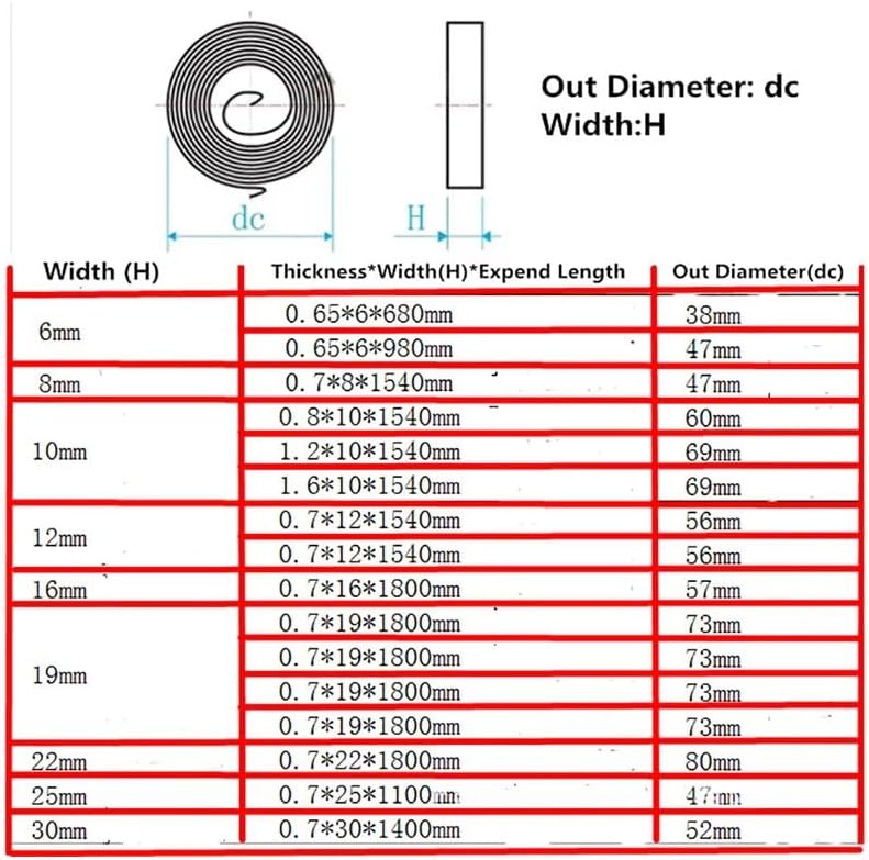 1PCS 0.6-1.5 thickness 6-25mm Width 680-1800 mm Length Spiral Flat Wire Coil Torsion Spring Constant Force Extension Springs