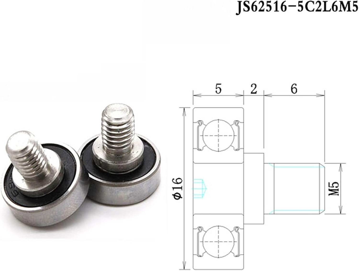 BearingsRoller NO.: JS60617-6C1L8M6Outer Diameter: 17mm Thickness: 6mmScrew Size: M6 x 8Max Load: 35kgScrew Material: 304 Stainless SteelBearing Material: Bearing Steel Bearing NO.: 606-2RSBearing Size: 6x17x6mmLubrication: GreaseFeature: High Load, High Service life, Low noise, Smooth Running.Application: Furniture, Drawers, Doors & Windows Showcase . etc.17mm Diamete 606 External Thread Bearing Wheel Pulley With M6 Screw JS60617-6C1L8M6 OD 17mm Stainles Screw Guide Roller==========Roller NO. : External Thread BearingBearing Material : Bearing SteelThread Materrial : 304 Stainless SteelOuter Diameter : 7~17mmScrew : M3/M4/M5/M6/M8/M10Lubrication : Grease