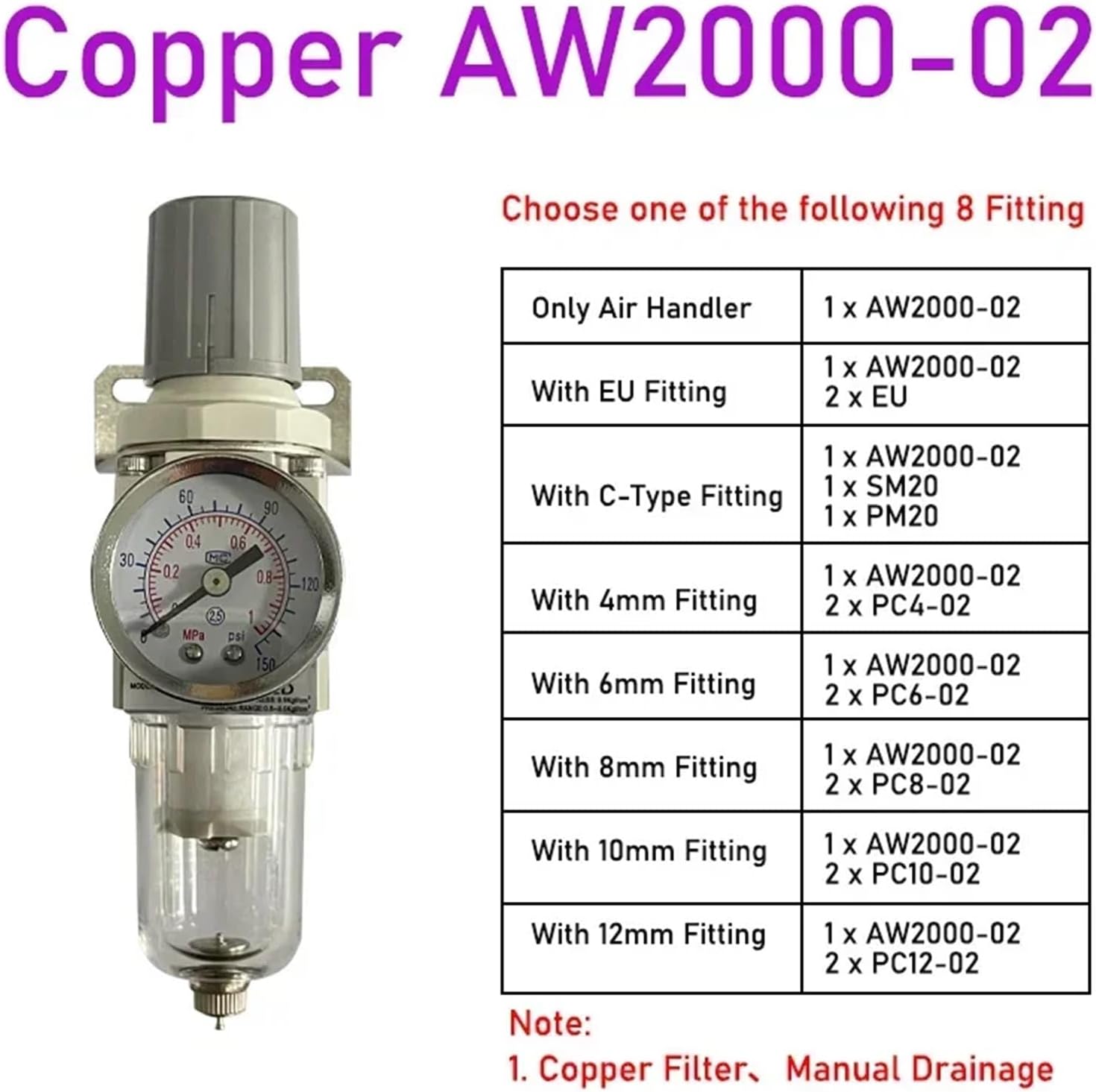 Solenoids1Pcs AW2000-02D AW3000-03D Pressure Regulator Oil Trap Filter for Compressor Air Processor Manual Automatic Drainage==========Hign-concerned Chemical : NoneType : Treatment UnitModel Number : AW2000-02/AW3000-03/AW4000-04/AW5000-06/AW5000-10Origin : Mainland Certification : None