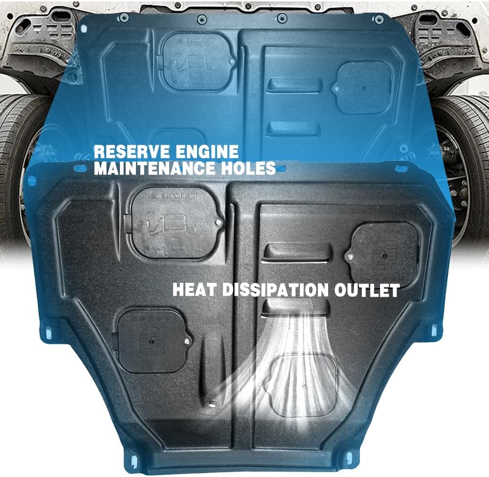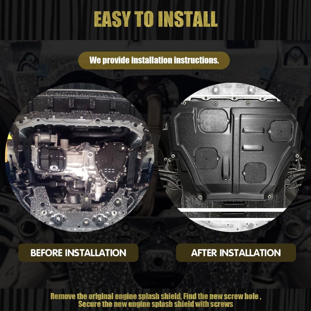 1)Package Included: 1 X Engine Splash Shield ,Screw.Installation instructions 2)Material:Plastic steel It is an upgrade to the original Engine guard.Not 1:1 to the original Engine guard. New Strong Thickened Engine Guard Cover made of new PVC material and plastic steel technology. It has advantages of hardness of steel, corrosion resistance of plastic, flexibility, aging resistance, etc., and is especially suitable for automobile chassis protection. The original plate problem is that too thin ,broken down, easily falling off, and the hardness is not enough. To solve these problems,The new engine splash shield professionally designed . The steel beam design is to increase its hardness.The thickness is three times that of the original one.Hard and durable.