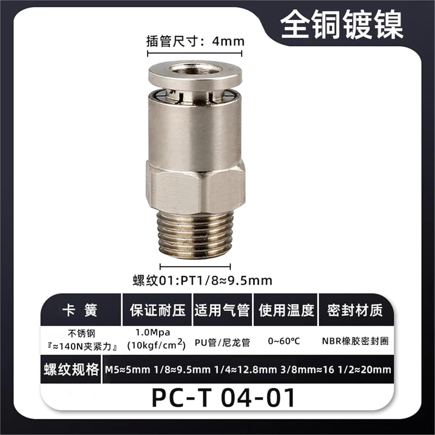 Quick-Connect-to-Barbed Fittings1pcs Pneumatic all-copper nickel-plated quick connector PC8-02 trachea metal through connector PC6-01 10-03 12-04