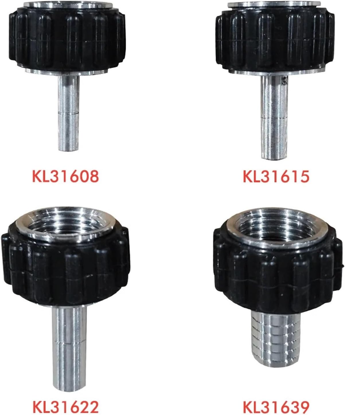 Home Brewing Starter SetsKL31608 Quick Swivel Connector 1/2' x 6.35mm (1/4') Straight Barb (duotight compatible)Features:- Stainless steel and silicone construction- High temp silicone grip provides a cool touch even with liquids!- Ribbed grips allow quick comfortable tool-free operation- Silicone o-ring seal is retained for perfect positioning but is easily cleaned or replaced- Fits all male 1/2" NPT and BSPT fittings as it is a parallel thread.-6.35mm (1/4") duotight compatible Stainless Steel Barb tailReplacement O-Rings can be found here ->KL31592(10 Pack) Replacement High Temp Silicone O-Rings for Quick Swivel Connector 1/2 Inch Nut---------------------------------------KL31615 Quick Swivel Connector 1/2' x 8mm (5/16') Straight Barb (duotight compatible)Features:- Stainless steel and silicone construction- High temp silicone grip provides a cool touch even with liquids!- Ribbed grips allow quick comfortable tool-free operation- Silicone o-ring seal is retained for perfect positioning but is easily cleaned or replaced- Fits all male 1/2" NPT and BSPT fittings as it is a parallel thread.-8mm (5/16") duotight compatible Stainless Steel Barb tailReplacement O-Rings can be found here ->KL31592(10 Pack) Replacement High Temp Silicone O-Rings for Quick Swivel Connector 1/2 Inch Nut------------------------------------------KL31622 Quick Swivel Connector 1/2' - 9.5mm (3/8') Straight Barb (duotight compatible) + Nut + O-ringFeatures:- Stainless steel and silicone construction- High temp silicone grip provides a cool touch even with liquids!- Ribbed grips allow quick comfortable tool-free operation- Silicone o-ring seal is retained for perfect positioning but is easily cleaned or replaced- Fits all male 1/2" NPT and BSPT fittings as it is a parallel thread.- 9.5mm (3/8") duotight compatible Stainless Steel Barb tailReplacement O-Rings can be found here ->KL31592(10 Pack) Replacement High Temp Silicone O-Rings for Quick Swivel Connector 1/2 Inch Nut-----------------------------------------KL31639 Quick Swivel Connector 1/2" x 13mm (1/2") Straight BarbThe Stainless Steel Quick Connectors in 1/2" Female NPT come with a heavy duty silicone grip guard allowing comfortable and quick tool-free operation.These are ideal for the ball valves and any and all half inch fittings like the 25 watt magnetically driven pumps.Features:- Stainless steel and silicone construction- High temp silicone grip provides a cool touch even with liquids!- Ribbed grips allow quick comfortable tool-free operation- Silicone o-ring seal is retained for perfect positioning but is easily cleaned or replaced- Fits all male 1/2" NPT and BSPT fittings as it is a parallel thread.- 13mm Stainless Steel Barb tail with 10mm ID BoreReplacement O-Rings can be found here ->KL31592(10 Pack) Replacement High Temp Silicone O-Rings for Quick Swivel Connector 1/2 Inch Nut==========Feature : Eco-FriendlyQuantity : 1 pcsMaterial : Stainless SteelType : Bar Accessories