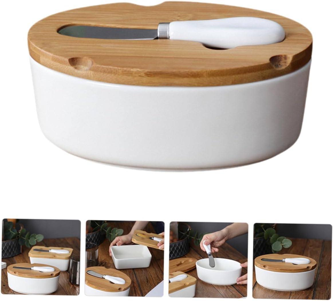 Package List 1 x Cutter 1 1 x Lid Characteristics -Color:Multi storage box -Material:Ceramic, home butter box -Size:17.40X12.00X7.40cm/6.84X4.72X2.91in butter container - With the lid design, Butter Dish and Lid can keep your cheese or butter clean and safe butter box with slicer. - Utility butter dish with lid to keep your butter fresh, provides a natural style for your kitchen butter dish with lid. - With this reusable butter dish you can store the butter to not be tainted by other odor butter box for home. - You will find your kitchen countertop neat and orderly after using it, improving your life greatly butter box with lid. - This ceramic butter keeper matches most kinds of butter, to satisfy your daily use butter dish.Goods Informationbutter preservation dish This Butter Storage Case is made of ceramic material, which can withstand the use.household tableware Fine workmanship, it the practicality.butter case with lid Features the good material, which has high durability, not easy to deform
