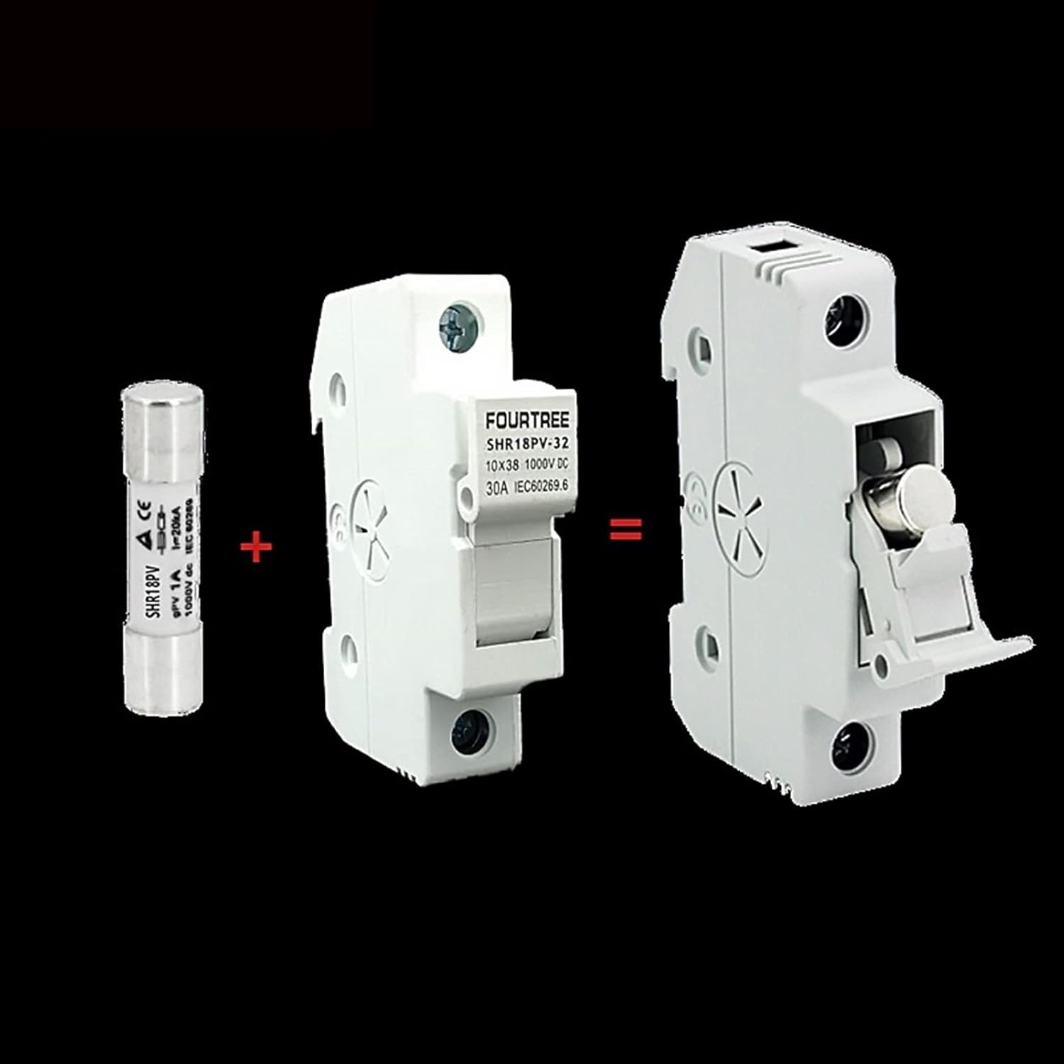 Fuse HoldersMagnetic SwitchesApplications:Solar Panels, Solar Photovoltaic, DC Strings. ADVICE: Always use fuses on positive and negative terminal on any photovoltaic string rated up to 1000VDCElectrical Characteristics:Rated voltage 1000VDC Amps 1A,3A,5A,10A,15A,20A,25A,30A Rated braking capacity 33kA dc Minimum interrupting rating 1.3x In Time constant under 1msStandard:IEC 60269-6, EN 60947-3, DC-20BFuse Holder for PV String Fuses:This holder is suitable for PV fuses rated 1A,3A,5A,10A, 15A, 20A, 25A and 30A. The maximum voltage is 1000V. The fuse holder can be combined with the following PV String Fuses which is essential protection for solar panels. - 1000V DC-20B - Modular 45mm cut out - 1 module (17,5mm) X pole - Mounting 35mm DIN rail - High temperature resistant plastics - Elevated insulation characteristics