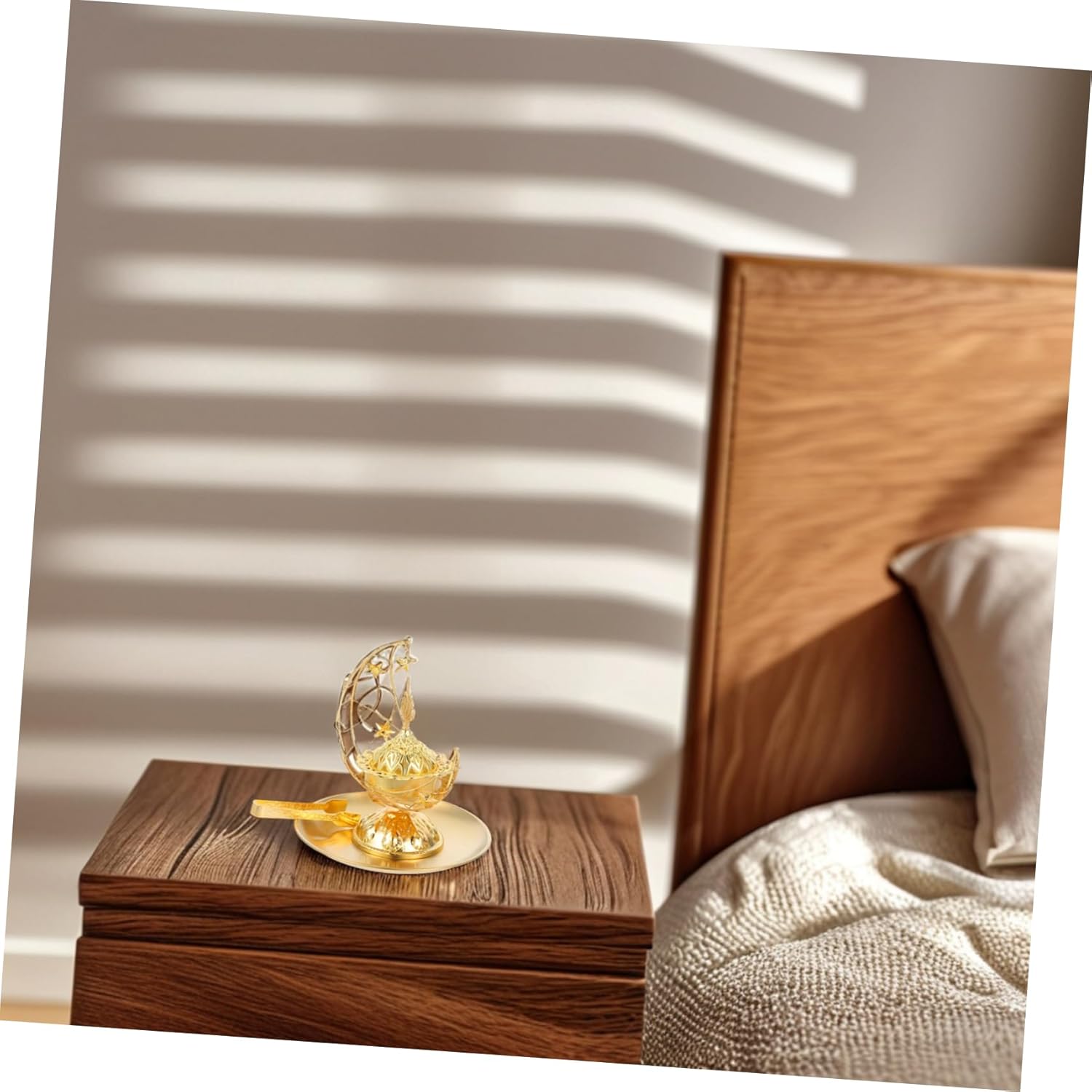 DescriptionThis Middle Eastern crescent metal incense burner tray set is a suitable addition to your living room decor. The combination includes a tray and clip, designed to hold incense securely while adding a touch of elegance to your space. The design and golden finish make it a standout piece that complements various interior styles.Features-Color:Golden-Material:Metal-Size:18.80X17.00X17.00cm/7.39X6.68X6.68in-Elegant middle eastern design: featuring a crescent moon metal incense burner tray and clip set, this unique ornament adds an exotic touch to your living room decor-Versatile usage: suitable for various decorative needs, whether for home, yoga sessions, or festive occasions like eid- metal construction: made from metal, this incense burner is , easy to clean, and resistant to wear over time-Simple and practical: designed for stability and ease of use, it remains firmly in place and is convenient to handle-Unique present choice: with its middle eastern design, it makes an ideal present for family and friends, showcasing your taste and thoughtfulness