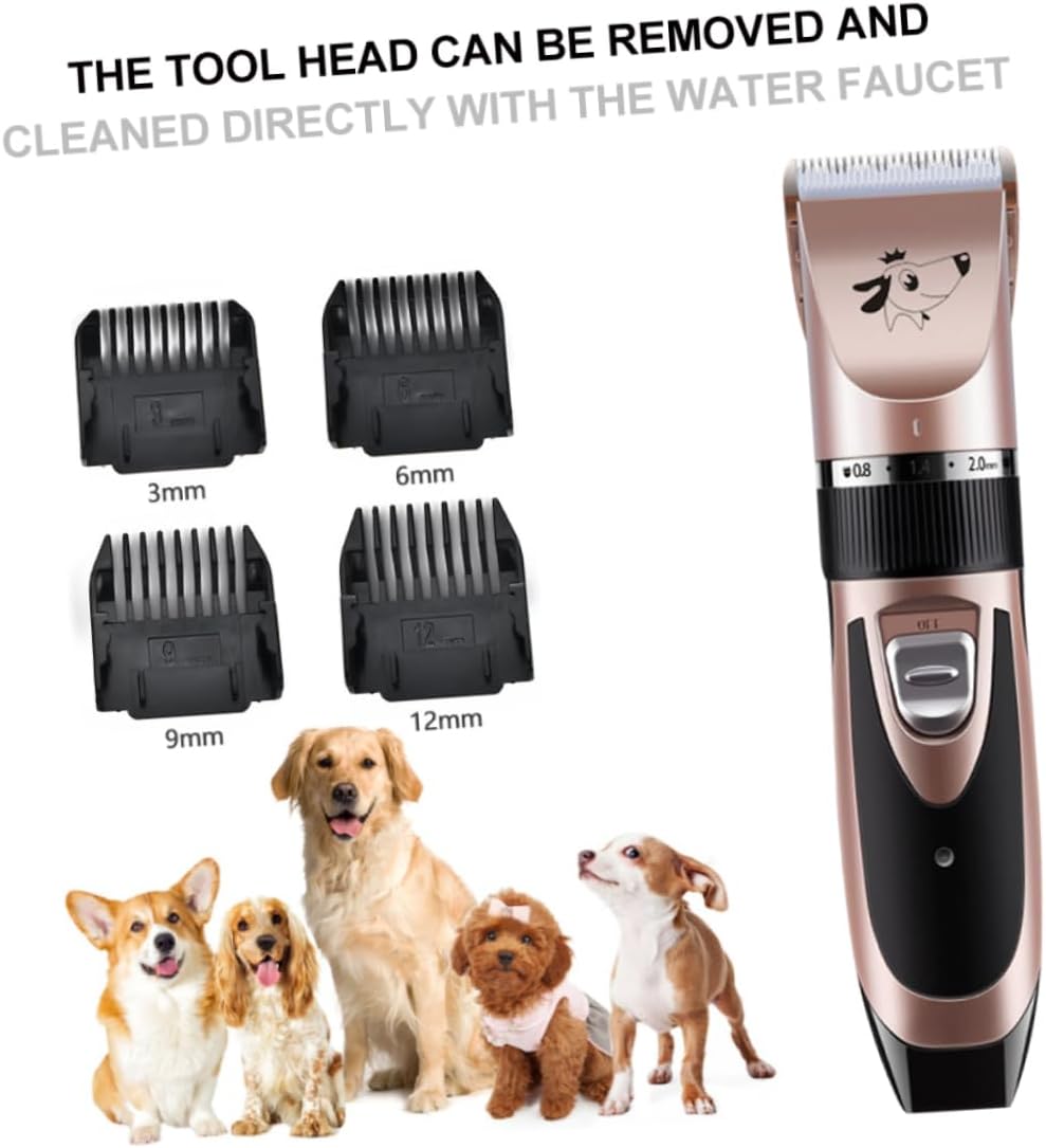 Package Include 1 x set of pet hair trimmers Characteristics - Working Hours: About 120 minutes pet clippers. - Motor: 3.7V pet hair trimmer. - Battery Capacity: 1500 mah dog hair trimmer. - Charging Mode: USB cat hair trimmer. - Color: Rose Gold. - Material: Plastic and ceramic. - Size: Approx. 18.5 x 4.5 x 4.3cm. - USB charging is more convenient dog clipper. - Obtuse and ceramic head design, hair trimming safely and can not hurt skin pet clippers for dogs. - -slip design is easy to hold. - The tool head can be removed and cleaned directly with the water faucet. - Without work noise. Cuting hair of you pet is easier.Goods Informationcat hair trimmer This professional pet clipper will provide your pets with excellent cutting experience.dog clipper This pet clipper keeps your pets always looking , it's very useful both in home and profession salon use! Made of material, safe and practical