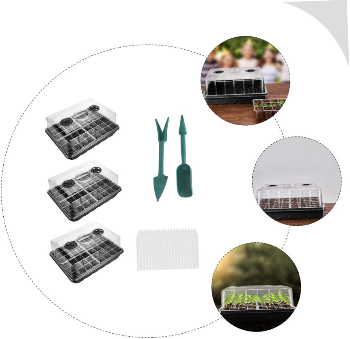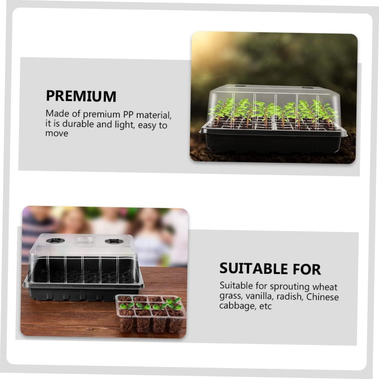 Package List 3 x Germination Boxes 1 x set of planting tool Characteristics - Size: About 36.00X27.00X16.50cm/ 14.15X10.61X6.48inch Plant Germination Trays. - Material: PP Planting Germination Plates. - Color: Assorted Color Plant Germination Case. - Suitable for starting flowers, vegetables, saplings and such as cucumbers, tomatoes and beans Planting Germination Containers. - The lid of the nursery box has adjustable ventilation hole, which provide a better germination environment for your plants Planter Tray. - materials and good processes ensure their durability and practicability Plant Germination Box. - Ideal size, providing an optimal growth environment for plant roots Planting Nursery Tray. - Light in weight and small in size, it's easy to use and storage Plant Growing Trays.Goods InformationFruits Sowing Supply That’ s because our product can meet your need.Plant Growing Trays Convenient to use and grow your plant healthier.Planting Nursery Tray Adopted of , it is and for long time use.Multi-hole Nursery Growing Trays If you are looking for a professional and plant germination tray, then your research is over here