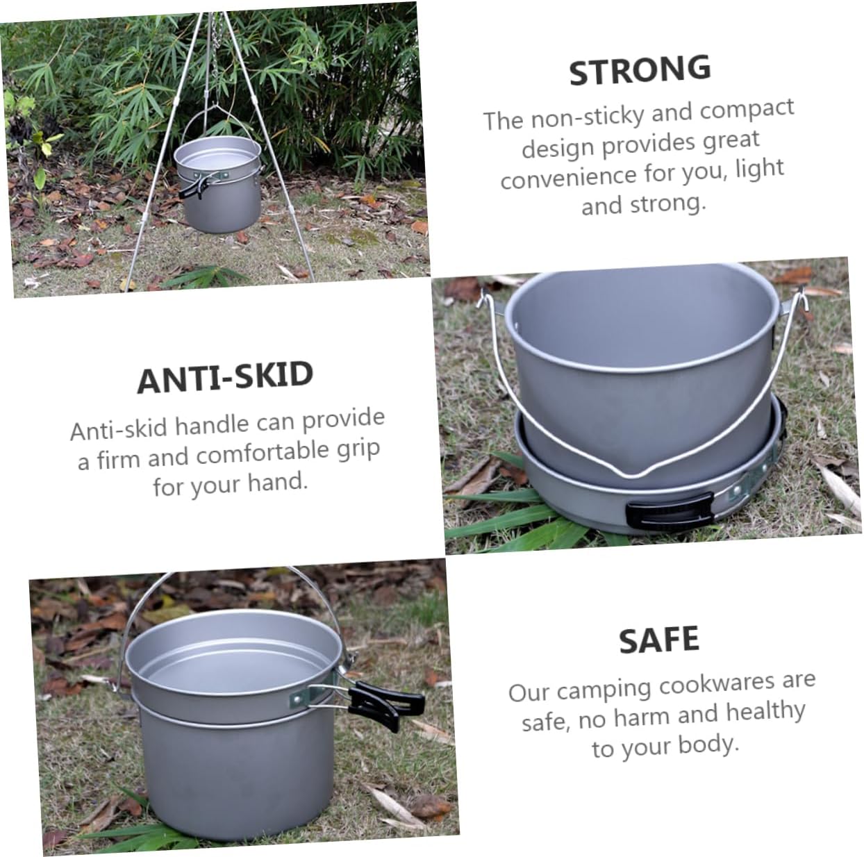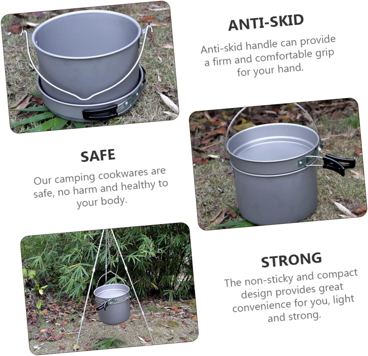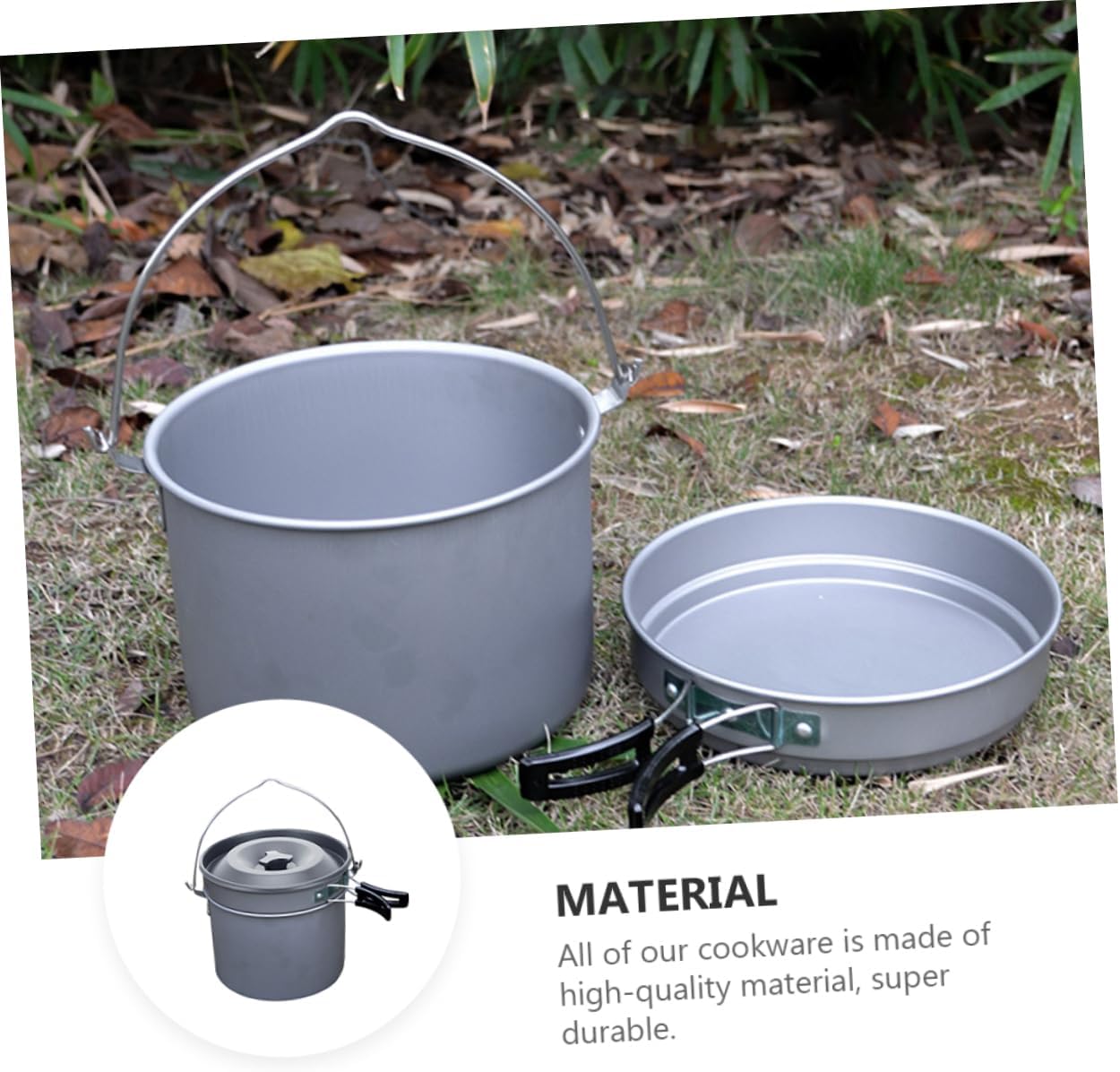 Package List 1 x big pot 1 x small pot Features -Big Pot Size:22x15cm/8.66x5.9in Picnic Cook Set -Material:Aluminium oxide Lightweight Camping Cookware -Small Pot Size:22.8x5cm/8.98x1.97in Portable Camping Cookwares -Color:Assorted Color Backpacking Cookware Set - This surface of this cooking set is smooth, it will not hurt your hand Outdoor Cooking Tool. - Strong and , and it could be reusable for a long term Outdoor Cook Set. - , more and healthy for your using Backpacking Travel Cooking. - It is a set of very useful cookware for indoor or outdoor cooking Picnic Cooking. - Compact size, easy to use and portable to carry when you go out Camping Cooking Pot Set.Goods InformationBackpacking Cook Tool Made of grade material for use.Portable Camping Cookwares Can be stored together in a bag for space saving and convenient carry.Picnic Cooking Device Our camping cooking set is suitable for your outdoor camping or household use.Backpacking Travel Cooking Nice choice to friends who enjoys outdoor activities