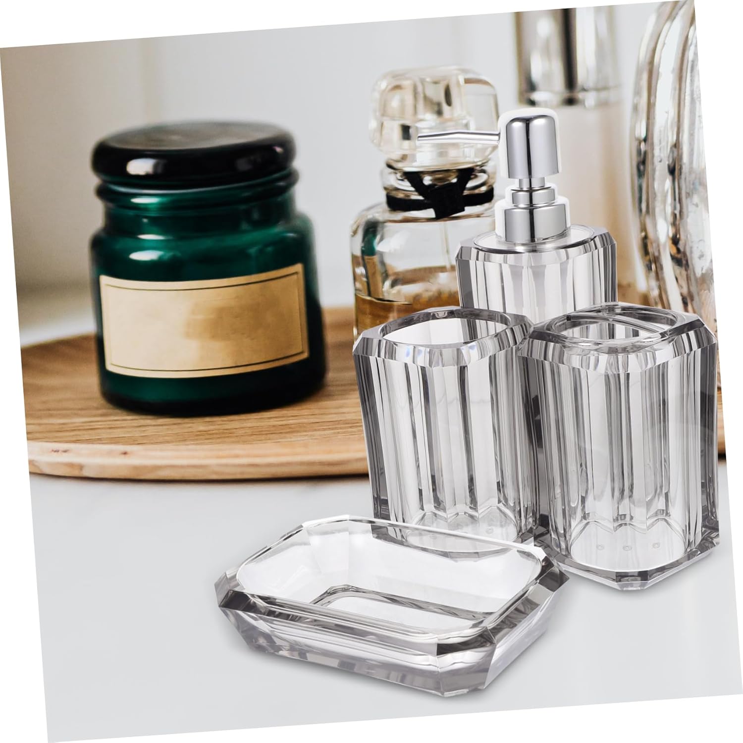 Package List 1 x lotion bottle 1 x toothbrush holder 1 x mouthwash cup 1 x soap dish Features -Material:Acrylic, stainless steel Kitchen Soap Dispenser -Size:10.00X6.50X6.50cm/3.93X2.55X2.55in(mouthwash cup) Shampoo Dispenser Bottles -Size:12.50X8.50X3.00cm/4.91X3.34X1.18in(soap dish) Soap Bottle -Size:10.30X6.50X6.50cm/4.05X2.55X2.55in(toothbrush holder) Soap Holder -Size:18.50X6.20X6.20cm/7.27X2.44X2.44in(lotion bottle) Shampoo Container -Color:Grey Press Pump Bottle -Fine workmanship ensures the practicality and durability of our Bathroom Accessories Set Pump Bottle. -Feature the smooth surface, making them convenient and easy to clean. accessories set for household bath, guest bath Shampoo Bottles. -The bathroom accessories are made of acrylic and stainless steel material, which has the longer service life Soap Dish. -Occupy on the table or counter top, while elevating & refresh the look of the bathroom Shower Pump Dispenser. -All item come with the compact size, which will not take up too much space Shampoo Bottle.Goods InformationShampoo Bottles Don't miss it.Tooth Brush Holder Fine workmanship and beautiful appearance, can ensure its popularity among women and men.Reusable Shampoo Bottle Chic polishing and smooth surface.Shampoo Bottle Dispenser This Bathroom Accessories Set, which is made of stable material for use