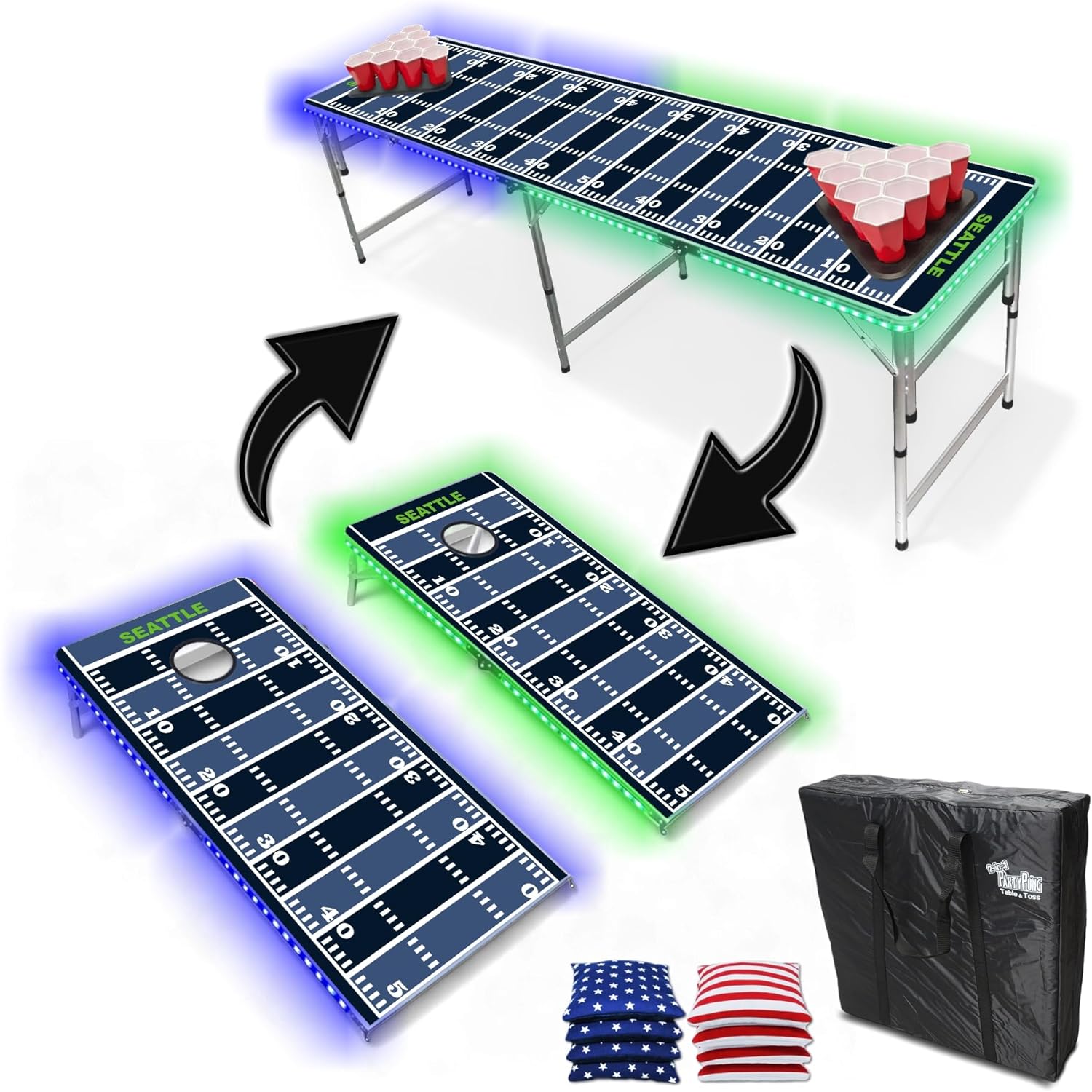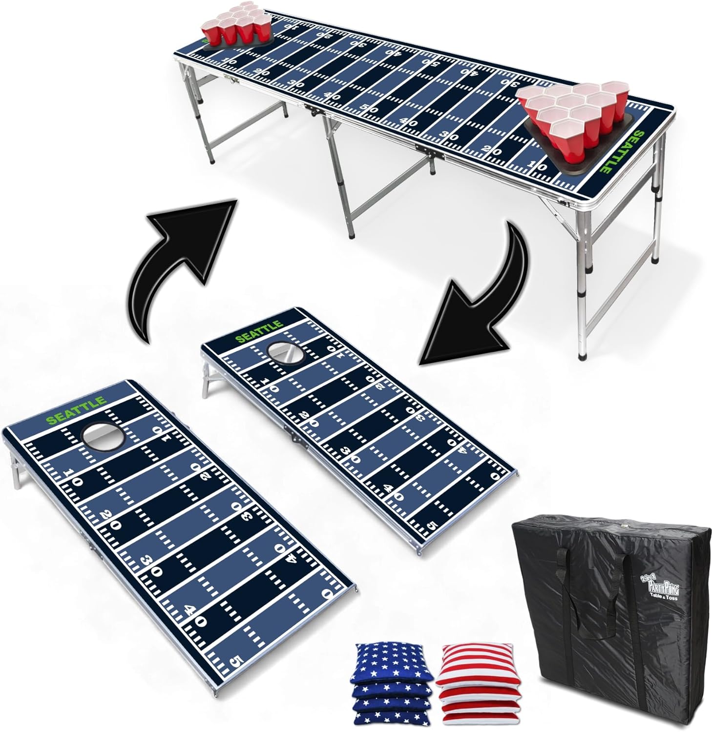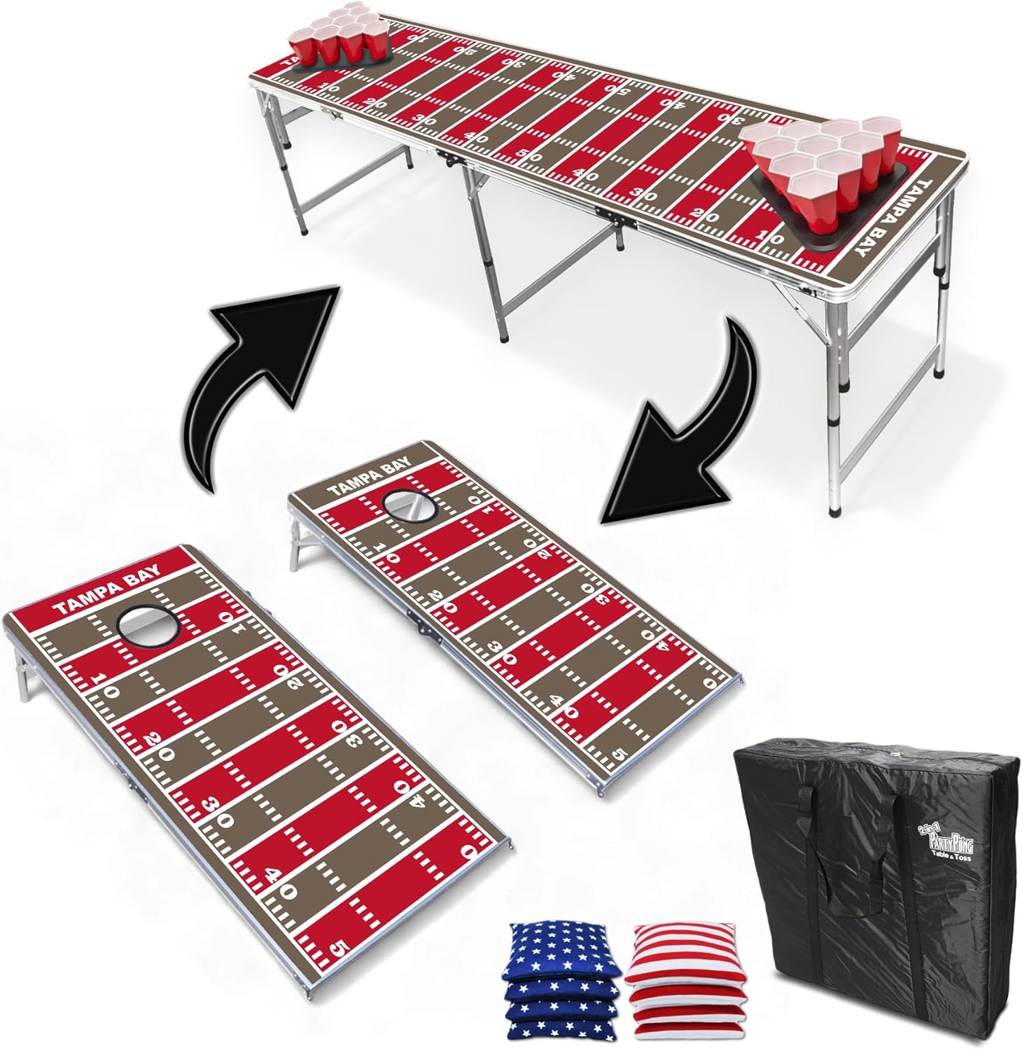 | Included Components | (2) 4x2 ft cornhole boards that convert into (1) 8x2 ft Party Pong table, (2) plastic triangles, (2) throwing bag storage pouches, (6) Party Pong balls, (8) all-weather throwing bags |