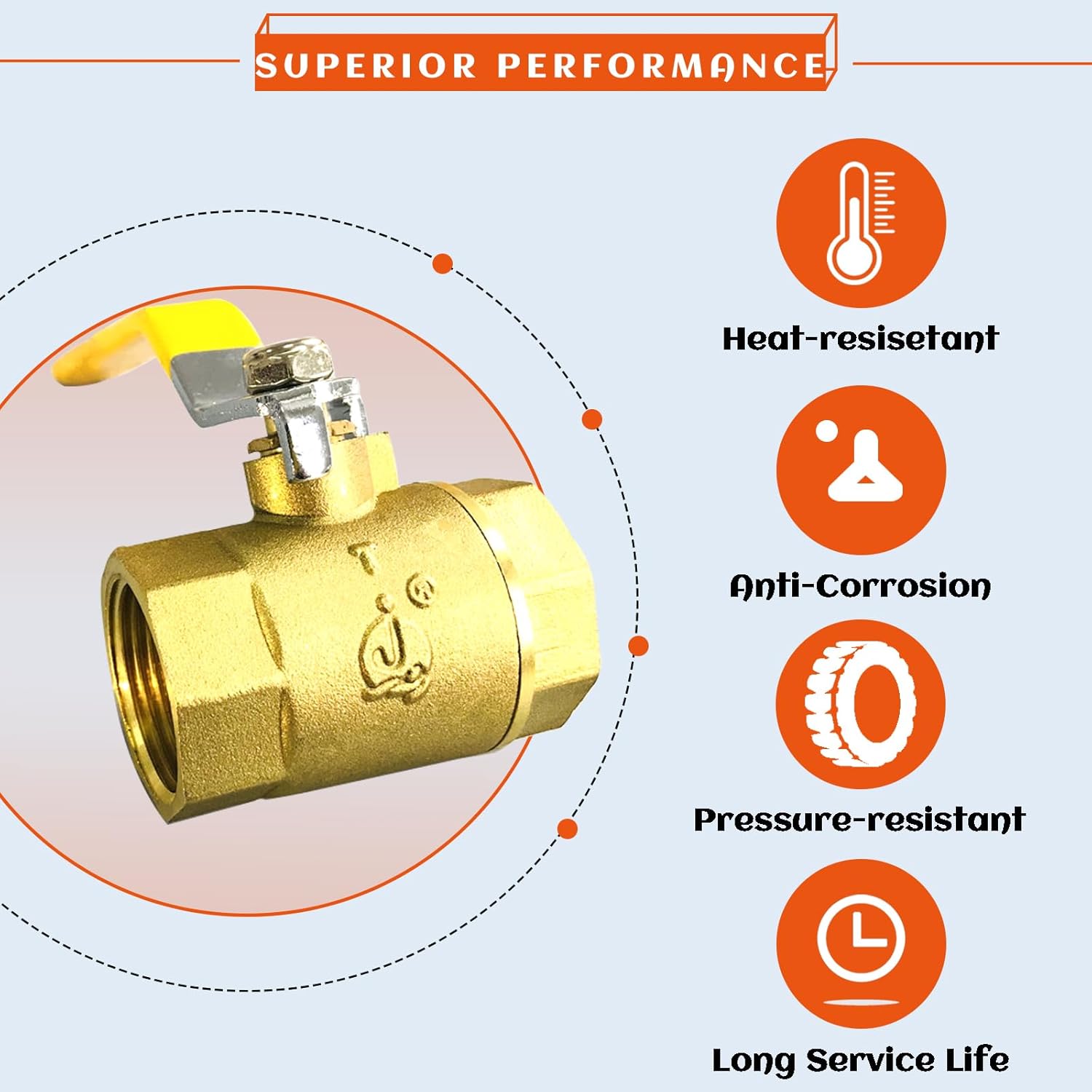 • The lever handle mounted on the top is used to close and open the 1 in shut off valve, easy to use, pressure free or no pressure. The spherical seal is made of PTFE for maximum stability and durability even at very high temperatures.