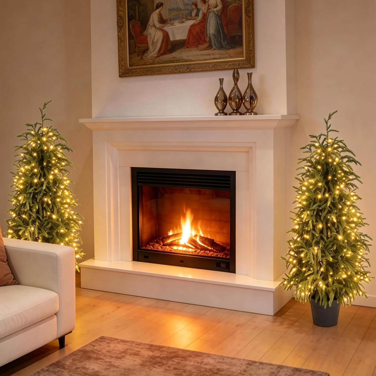 2-Pack 3FT Lighted Artificial Topiary Trees Outdoor – Realistic Faux Outdoor Plants with Windproof Planter, Pre-lit Artificial Trees for Front Porch Decor